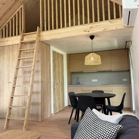 Šiuo metu turime 6 namelius, telpa iki 24 asmenų. Vaikams iki 18 metų nakvynė nekainuoja. Draugiški Jūsų augintiniams.