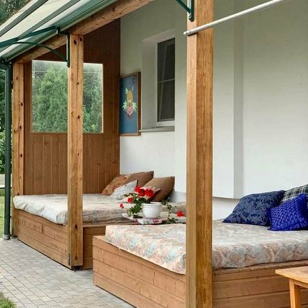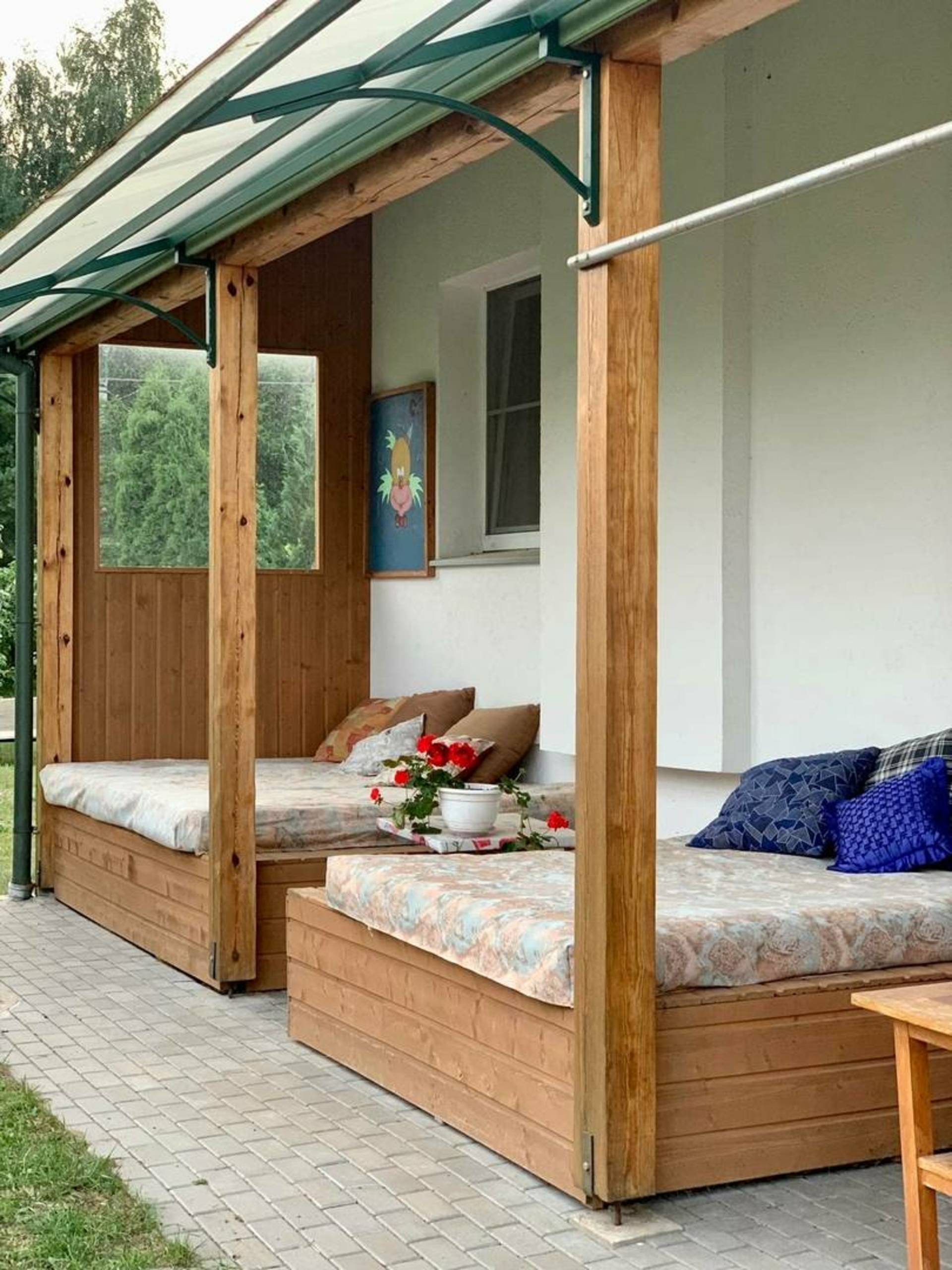 Prie abiejų namų Jūs galite mėgautis 2 didelėmis terasomis su vaizdu į ežerą. Taip pat yra kubilas, kuriame gali maudytis vienu metu iki 10 žmonių. Sodyba yra pritaikyta ir vaikams: aptverta teritorija, mažas lauko baseinas, supynės ir kitos pramogos. Suaugusiems patogu žvejoti nuo tiltelio, norintys gali pasiplaukioti valtimis, vandens dviračiu. Vėlyvas išvykimas iš anksto suderinus su šeimininkais.
