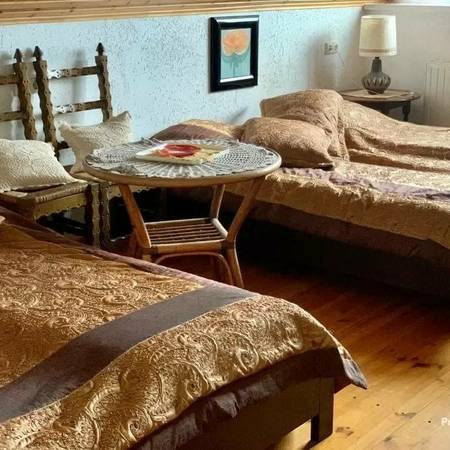 4 kambariai, 2 virtuvės, 4 WC su dušais, kambariuose TV. Name yra lietuviška pirtis, pokylių salė, vyno rūsys, šaškių ir šachmatų stalai, mini biblioteka.