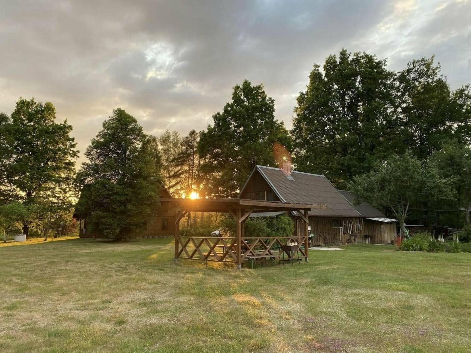 -Nakvynę trobelėje (15 mieg. vietų), su virtuve, kaimiška krosnimi, židiniu, šaldytuvu, dujine virykle, ir kt. virtuvės inventoriumi. Atskira pavėsinė. Lauko tualetas.