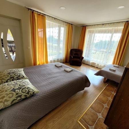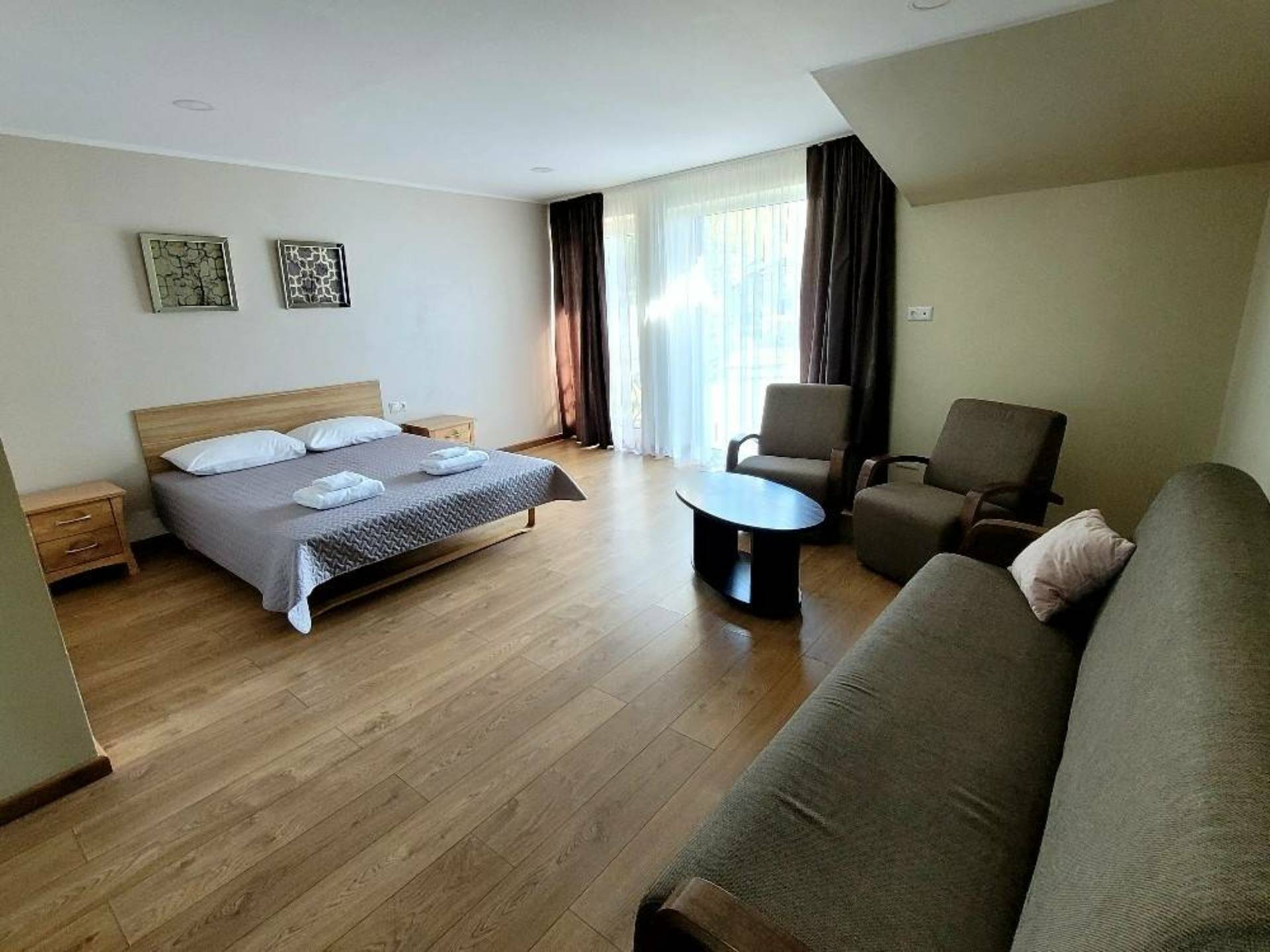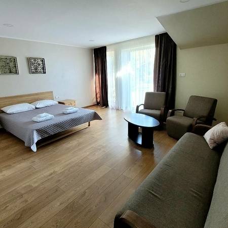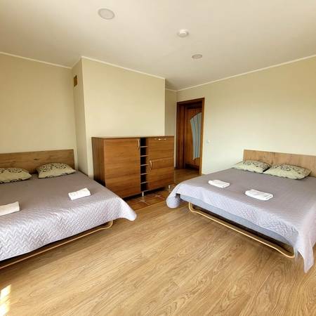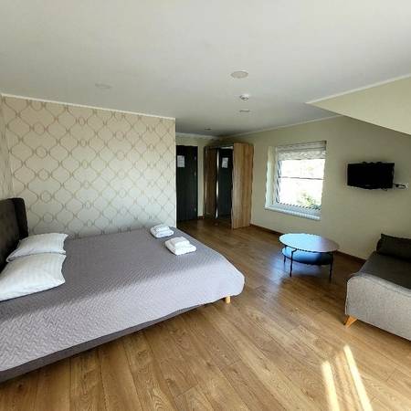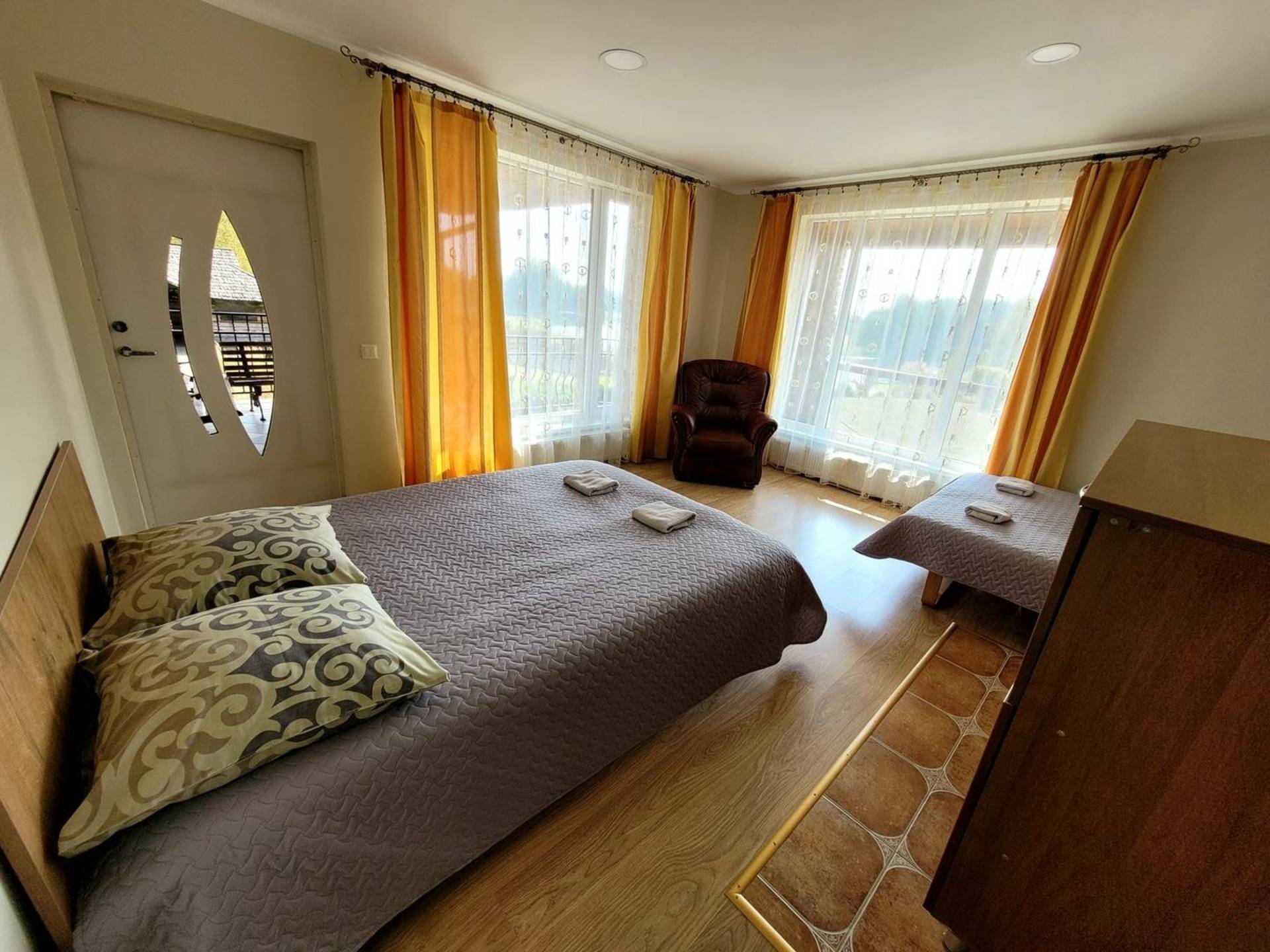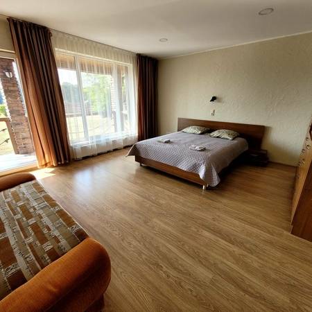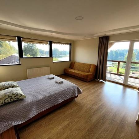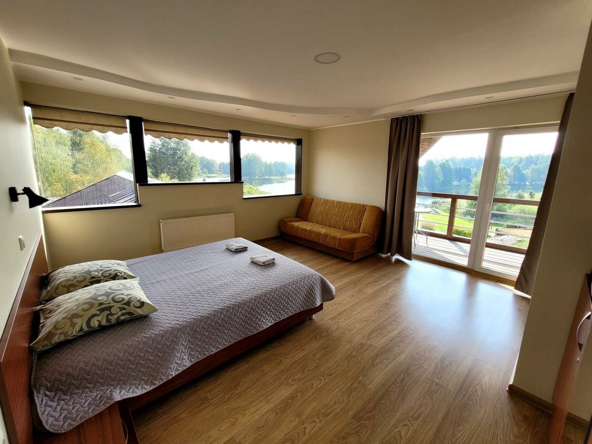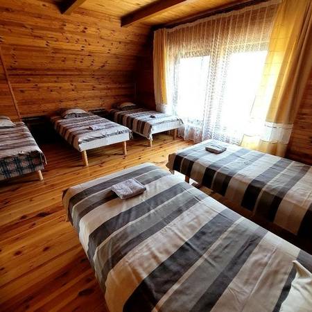Jūsų patogumui sodyboje yra trys atskiri namai, juose rasite dviviečius, triviečius ir keturviečius kambarius, čia taip pat įrengtas tualetas ir dušas, virtuvė, kurioje – būtinas inventorius, indai ir įrankiai, visada bus šilto vandens. Kiekvienas namas turi didelius balkonus, iš kurių atsiveria nuostabus vaizdas į ežerą. Neseniai pastatytame trečiame sodybos name įrengta didelė pokylių salė, joje telpa iki 100 žmonių, visus juos galima apnakvindinti.