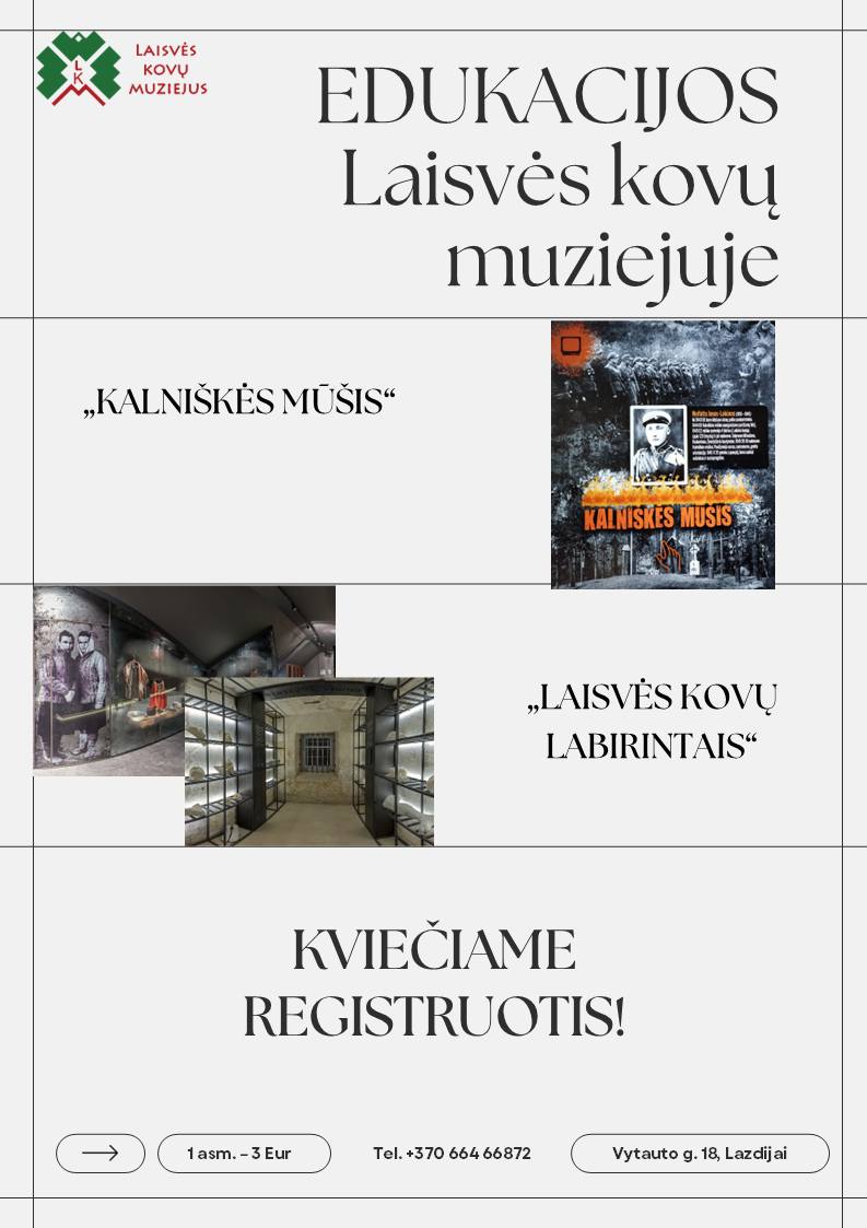 - Eine Voranmeldung ist telefonisch unter +370 664 66872, +370 617 31489 oder im Kulturpass-System https://www.kulturospasas.lt/ erforderlich.