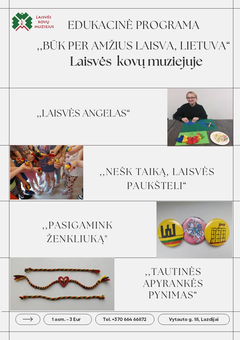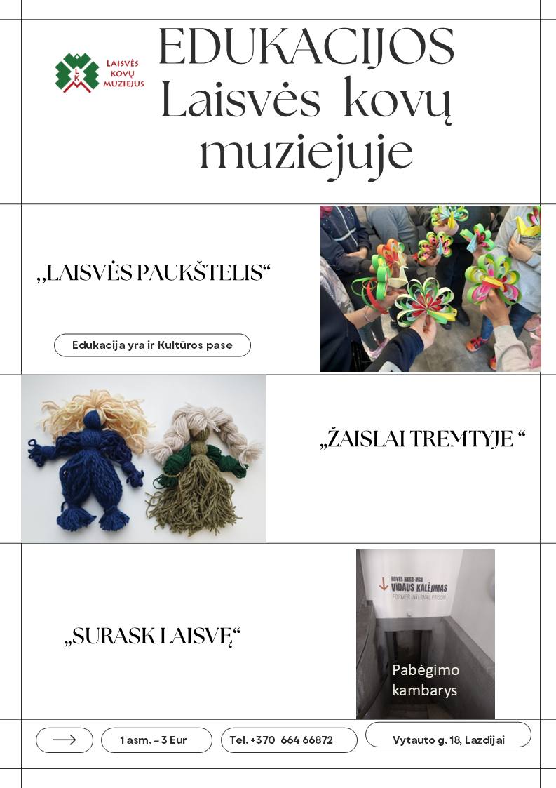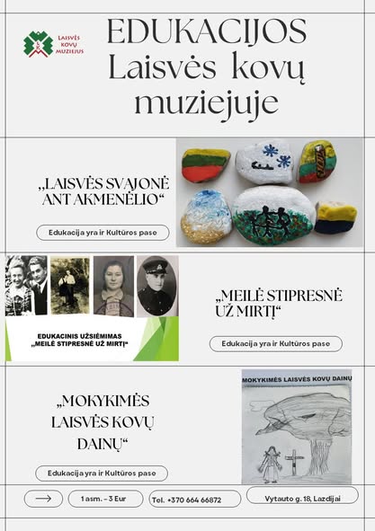 - Wir stellen 12 pädagogische Aktivitäten vor, die sowohl für Kinder als auch für Erwachsene geeignet sind. Sie können auch vier Ausbildungen im Kulturpass finden: https://www.kulturospasas.lt/ .
