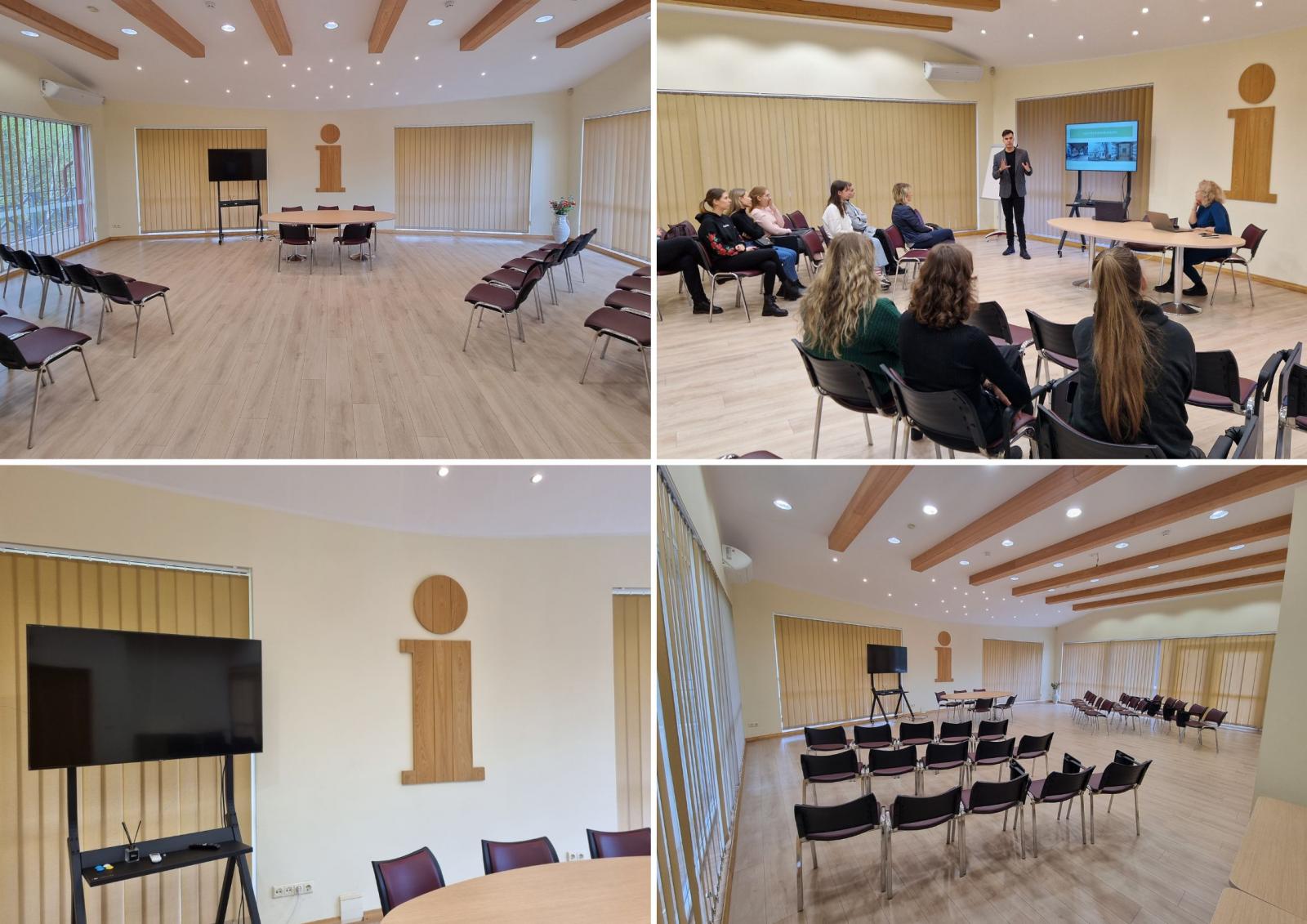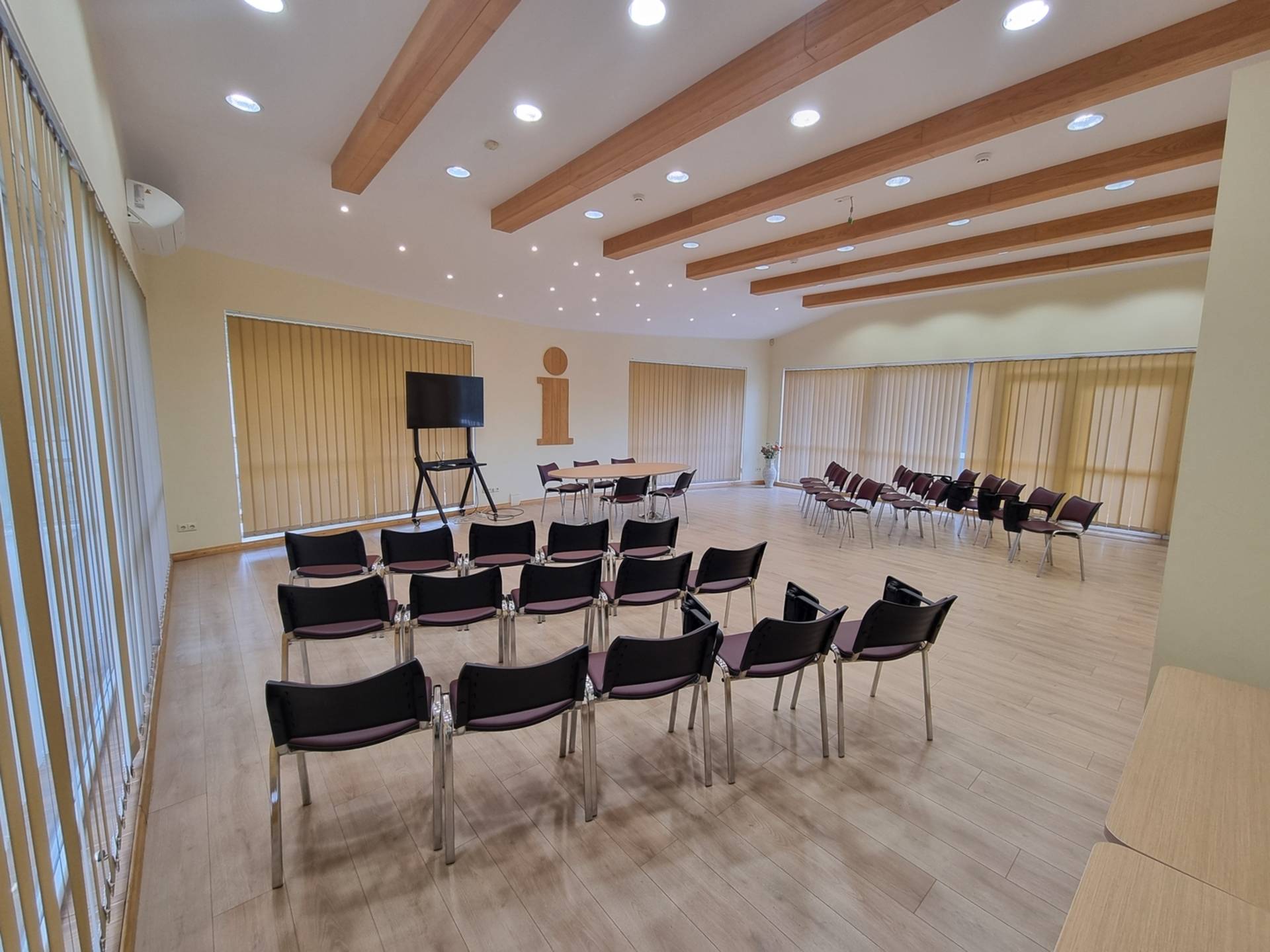 Ein komfortabler und geräumiger Saal für Konferenzen, Tagungen und verschiedene Präsentationen befindet sich im VšĮ „Lazdijai turizmos informacinis centras“ in Janaslavok. 10, LT-67170 Bezirk Lazdija. wöchentlich Durch die Fenster der modernen Halle eröffnen sich wunderbare Ausblicke in die Natur, die Sonnenstrahlen strahlen auf die grünen Tannennadeln und erzeugen so eine besondere Aura. Es ist ein Ort, an dem Entscheidungen unerwartet leicht fallen und neue Ideen geboren werden. Der Saal ist gemütlich und komfortabel, er bietet Platz für bis zu 60 Personen gleichzeitig, es besteht die Möglichkeit, eine Leinwand zu nutzen, es gibt eine Klimaanlage. Das Gebäude ist für Menschen mit eingeschränkter Mobilität geeignet.