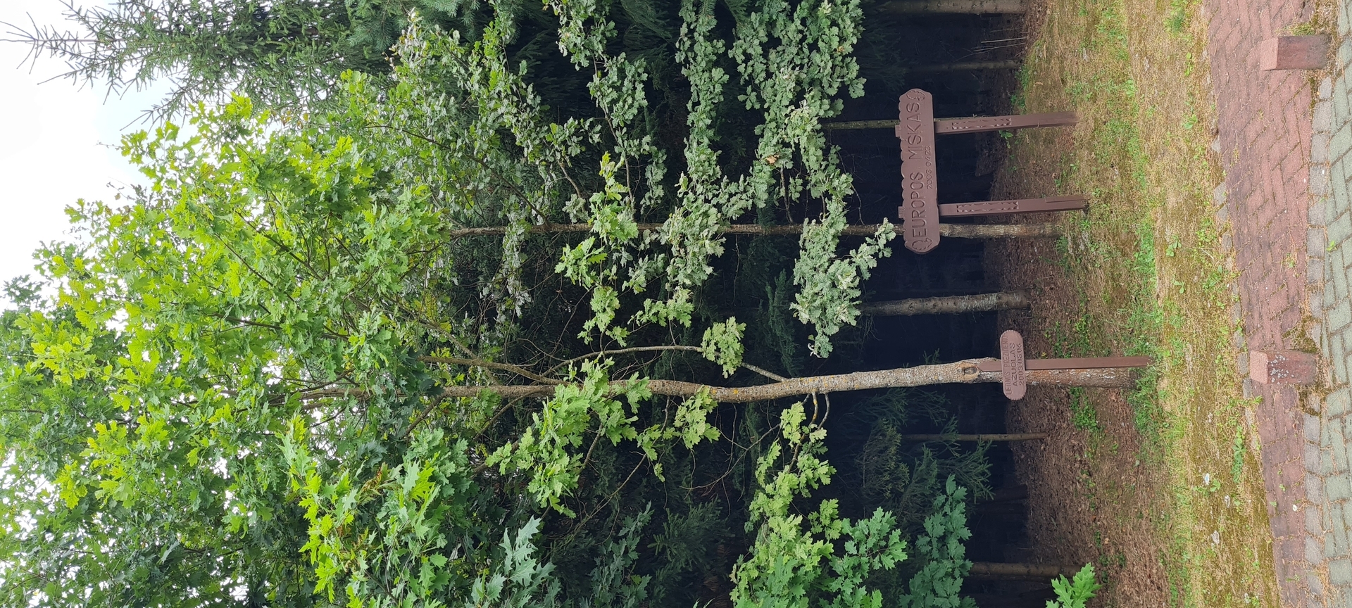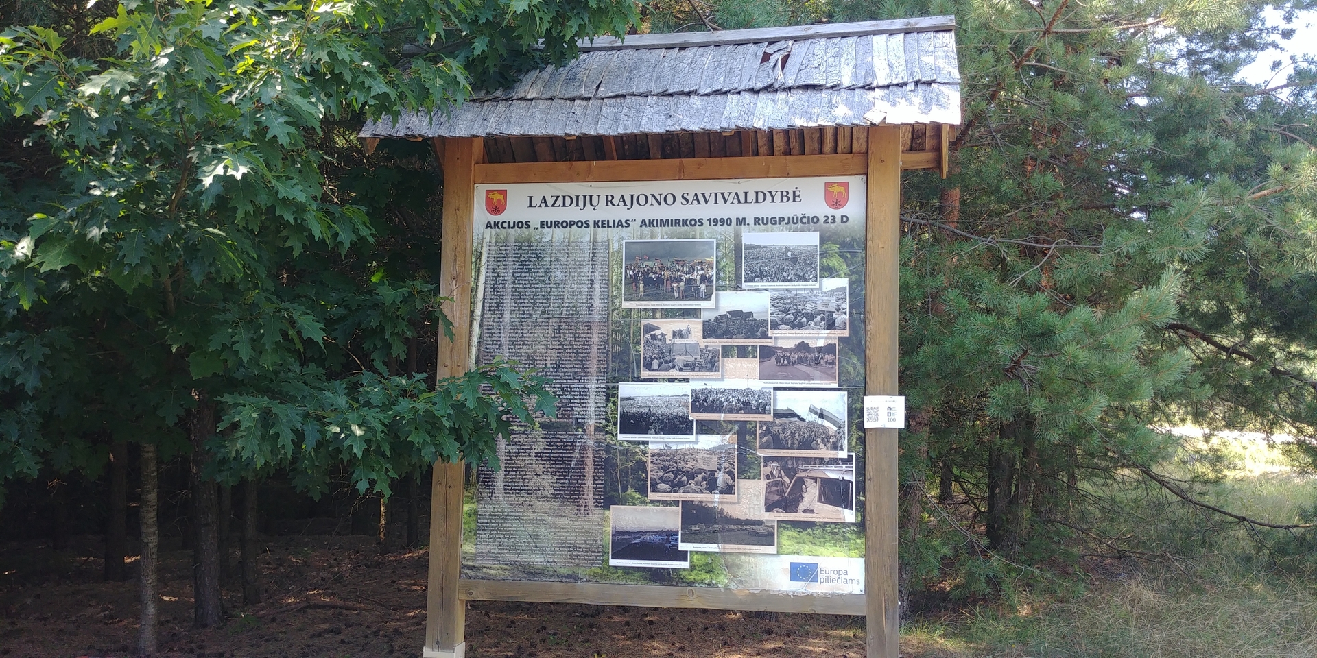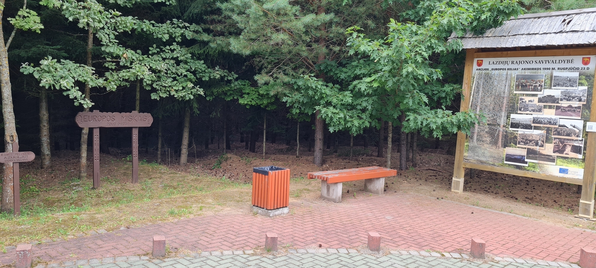 Obwohl die Europastraße in den regnerischen 1990er Jahren nicht so massiv war wie die Ostseestraße und viel seltener in Erinnerung bleibt Am Wochenende im August kam eine beeindruckende Menschenmenge aus ganz Litauen auf die Felder in der Nähe von Lazdijai. Auf der Bühne traten die Rock- und Popmusikstars jener Zeit auf, die Staatsoberhäupter und Sąjūdis-Führer sprachen, und sie wurden von bewaffneten sowjetischen Militärangehörigen hinter dem Stacheldraht von gepanzerten Fahrzeugen beobachtet. in 2003 23. April Der an diesem Ort gepflanzte europäische Wald, wie damals angekündigt, symbolisierte die Rückkehr Litauens nach Europa und wurde zwischen der Unterzeichnung des Vertrags Litauens über den Beitritt zur Europäischen Union im April in Athen und dem Referendum über den Beitritt zur EU in organisiert Kann. Auf einer Fläche von 18 Hektar pflanzten die Helfer 80.000 Bäume. Kiefern und 10 Eichen, die die 10 Staaten symbolisierten, die damals eine EU-Mitgliedschaft anstrebten.