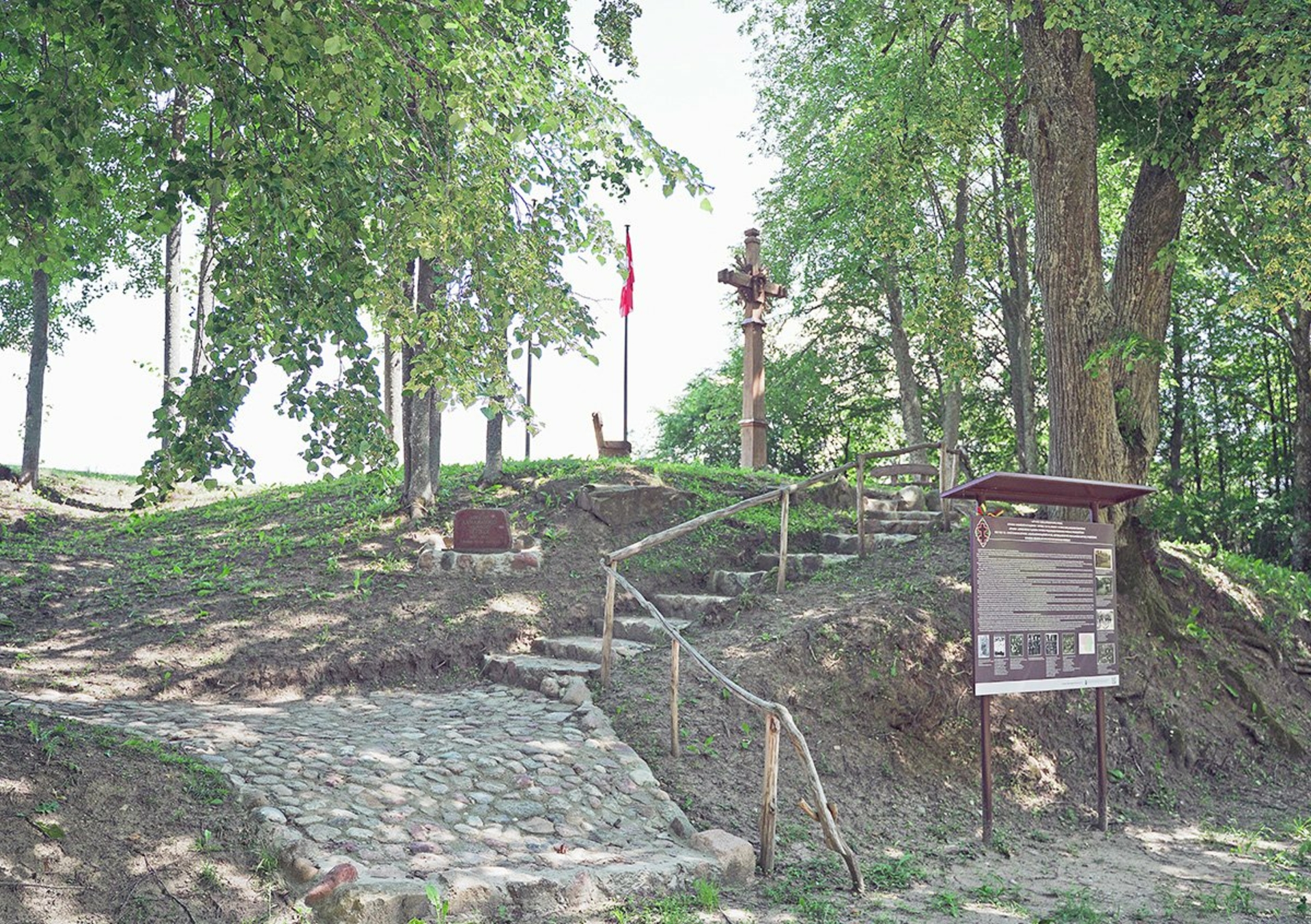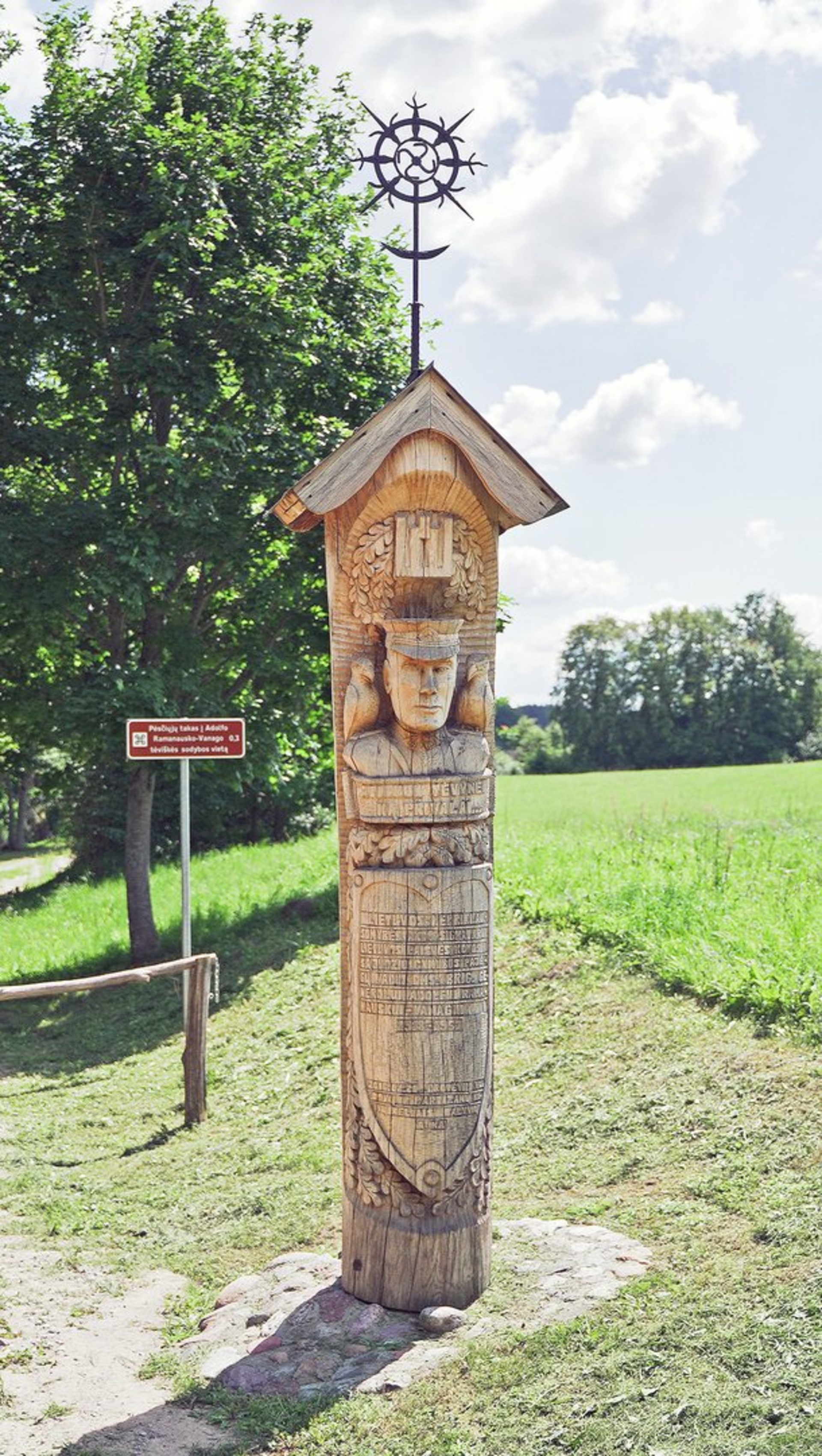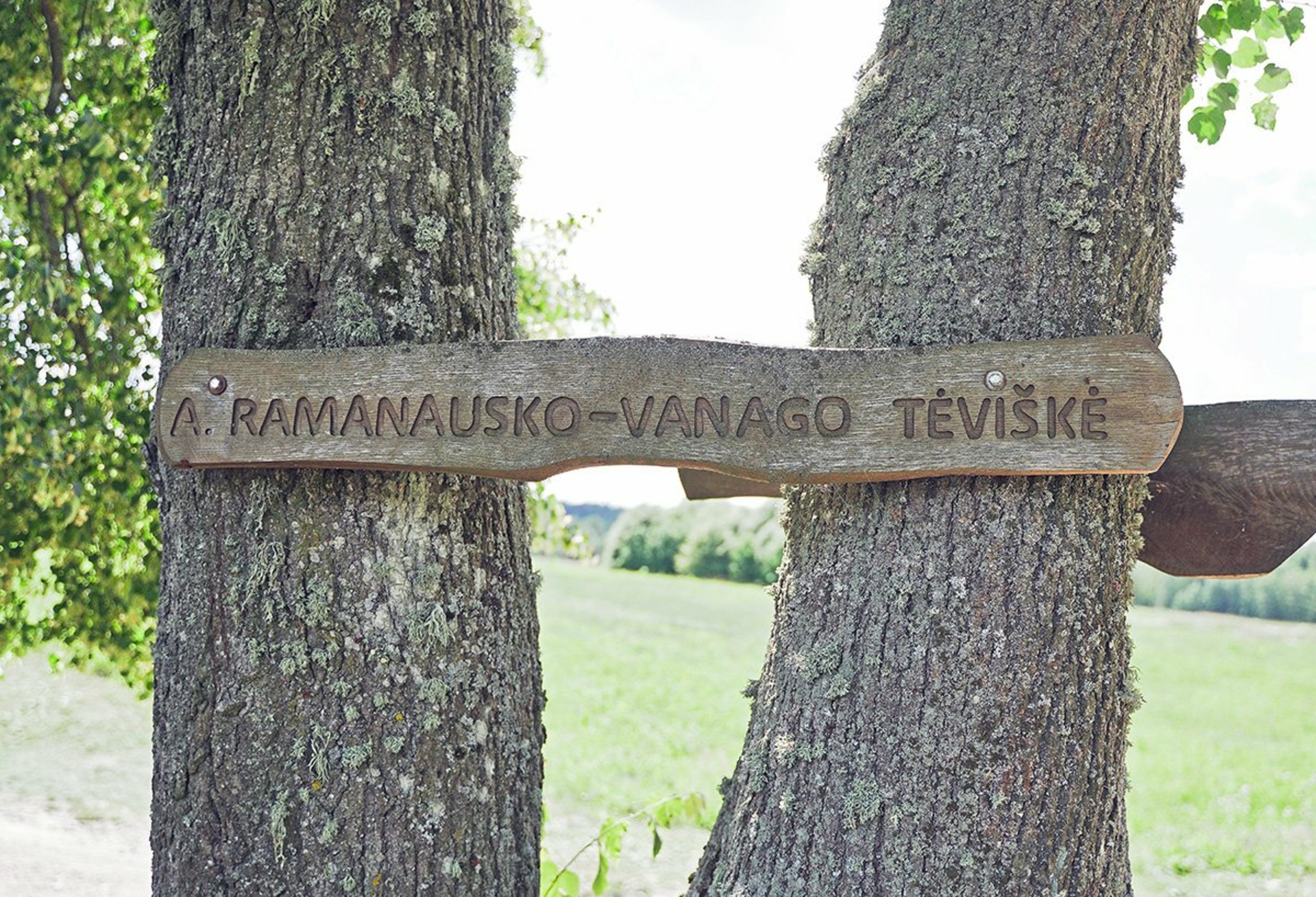 1921 Nach seiner Rückkehr aus den USA nach Litauen ließen sich Liudvikas Ramanauskas und seine Frau Elena Jovaišyte Ramanauskiene im Dorf Bielėnai in der Gemeinde Rudamina im Landkreis Seinai nieder. Liudvikas und Elena Ramanauskas zogen drei Kinder auf: Adolf war der älteste, geboren in New Britain, USA, seine Tochter Aldona und sein Sohn Albinas wurden bereits in Litauen geboren. Bis heute ist das Fundament großer Steine an der Stelle des Gehöfthauses erhalten. In Erinnerung an den Partisanenkommandanten A. Ramanauskas-Vanagas im Jahr 2016. Eine Eichendachpfeiler wurde enthüllt und eine Zufahrtsschiene installiert.