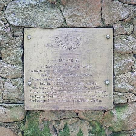 im Jahr 1951 27. September Im Wald von Bestraigiška hat der MGB gemäß seinem Verratsplan unter Einsatz des rekrutierten ehemaligen Adjutanten der Šarūnas-Nationalmannschaft, B. Saveikis-Klajūnas, des Agenten Bronias und einer Gruppe von Agenten – als „polnische Partisanen“ getarnte Falkner – verübt Eine Operation, bei der der Kommandeur des Bezirks Dainava, Juozas Gegužis-Diemedis, Šarūno, und sein Adjutant Gediminas Urmanavičius-Pavasaris, Partisanen von Mindaugas Heimat, getötet wurden: Stasys Krukonis-Žvaigždikis, Algirdas Salinis-Skirmantas, Partisanen von Juozapavičius Heimat Bolius Vailionis- Narsuolis, verwundeter und verhafteter Kommandeur von A. Juozapavičius Heimat Juozas Karpavičius-Medelis, - später vom Agenten Juoz rekrutiert.