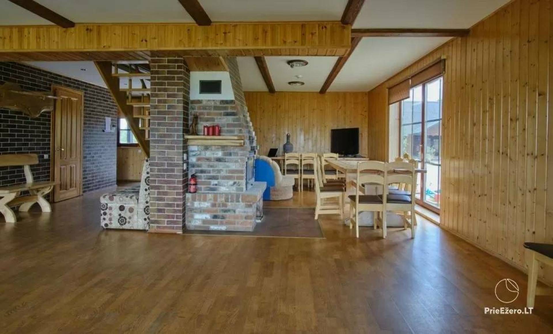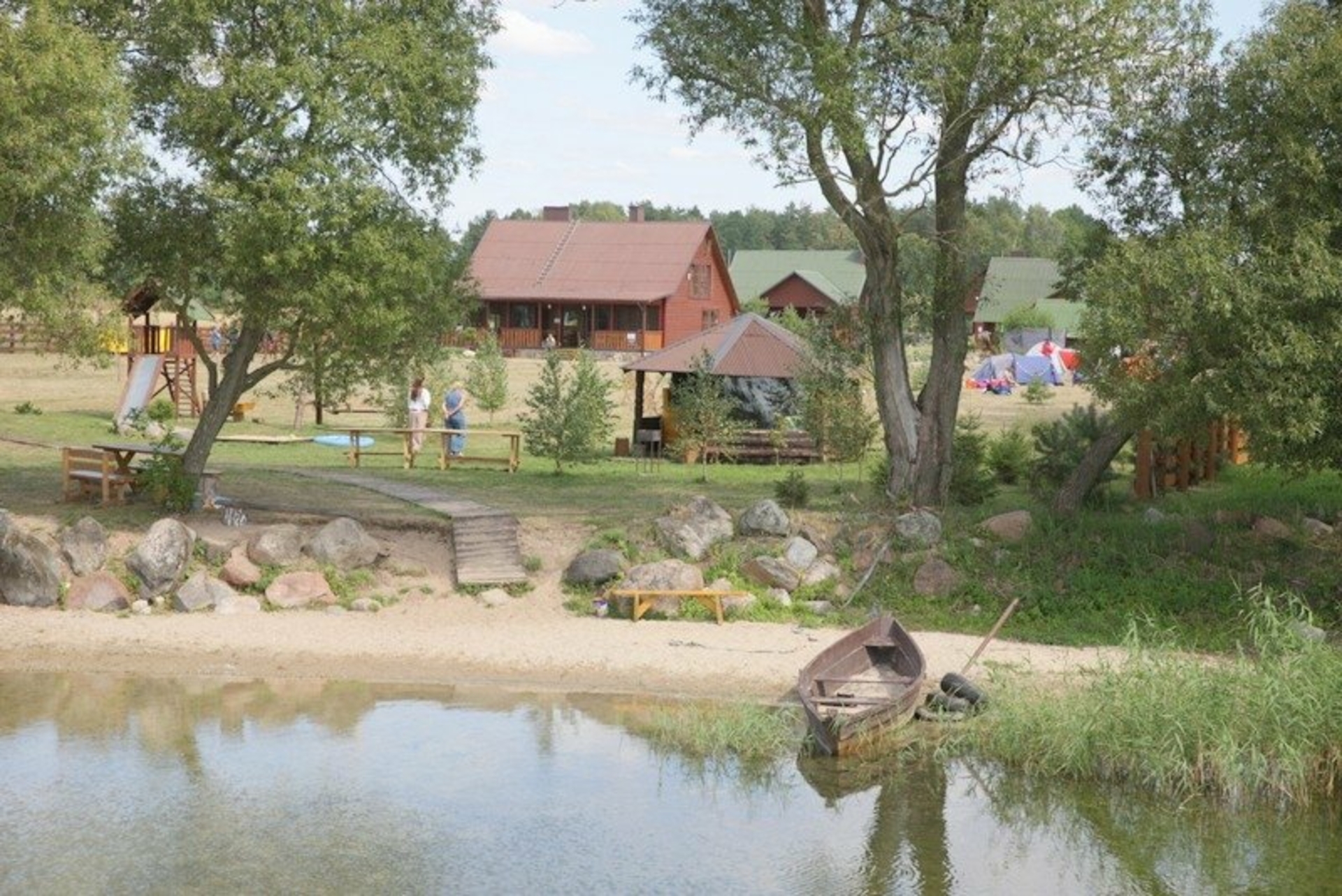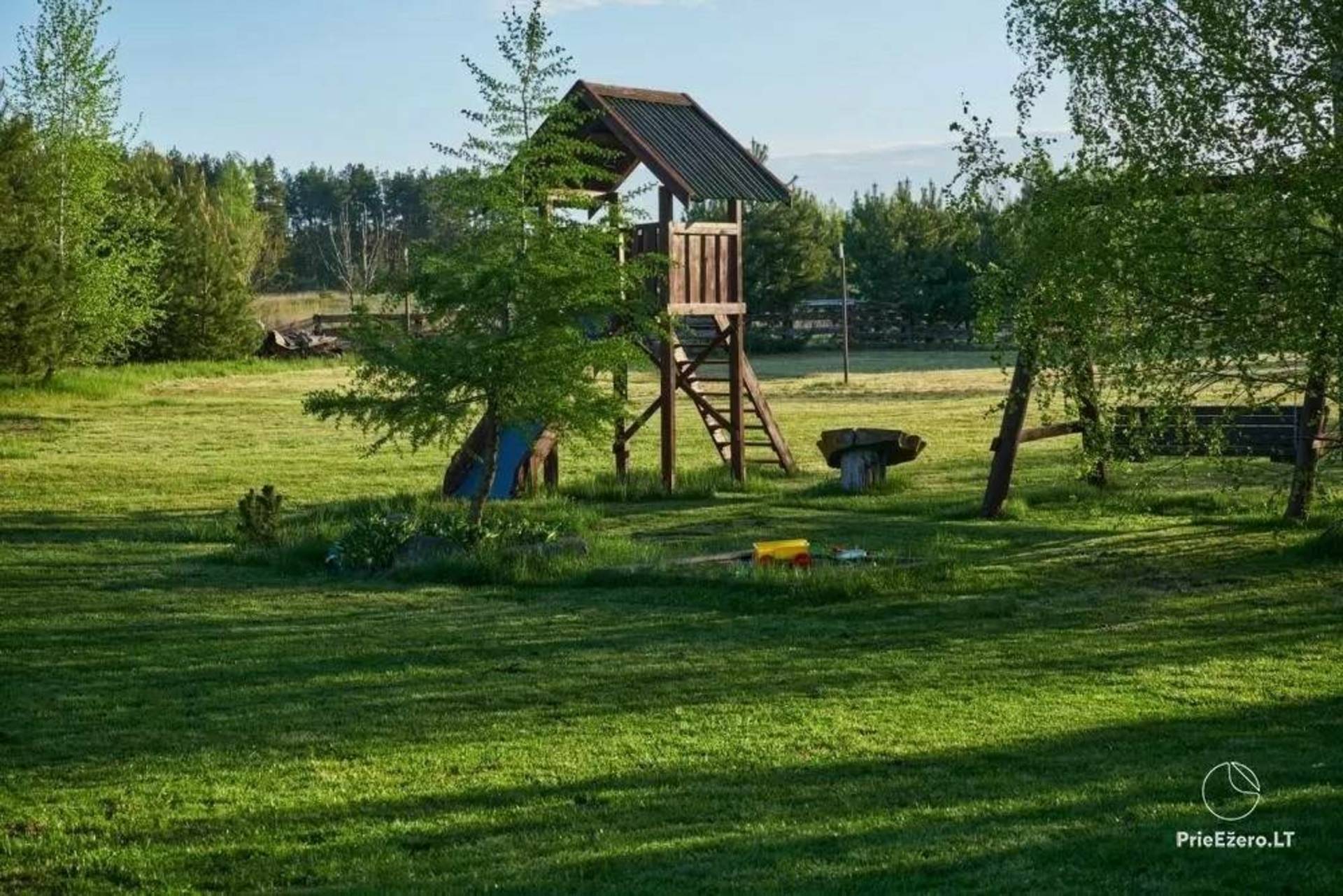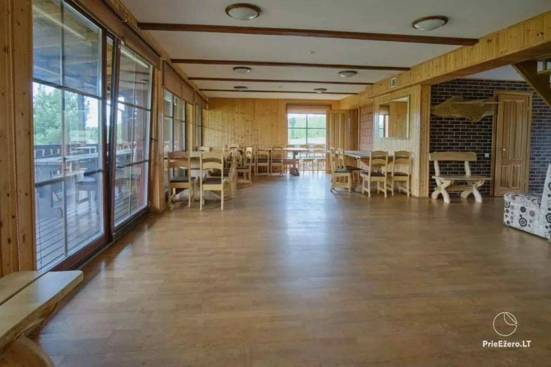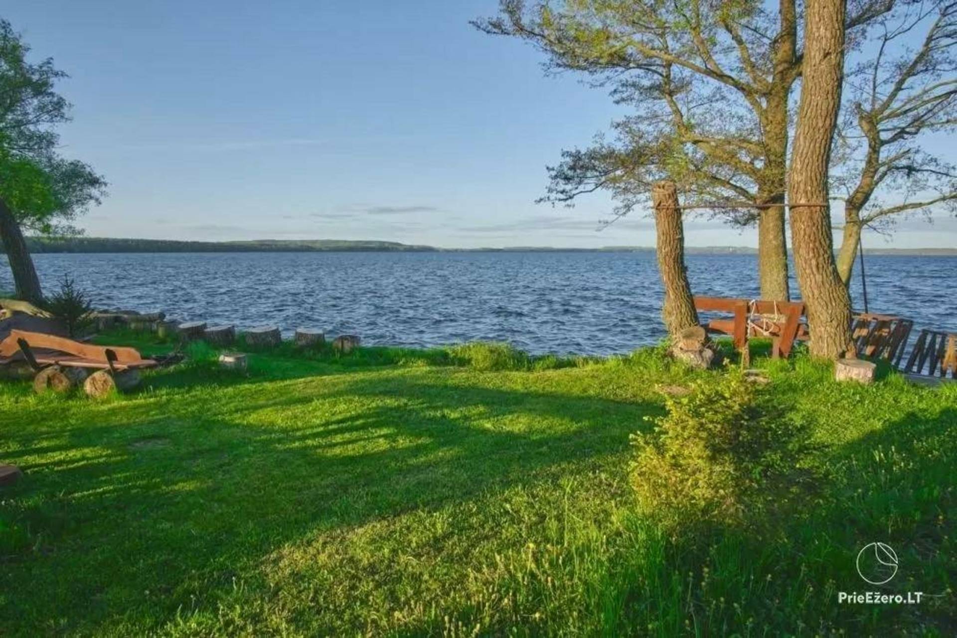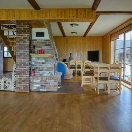 Neu ausgestattetes ländliches Tourismusgehöft. Es gibt 5 Häuser, eines davon groß mit Bankettsaal, bietet Platz für 50 Personen, es gibt Schlafzimmer, 4 Pavillons (einer am Seeufer), Sauna mit WC, Dusche, Vorraum und Küchenbereich, Whirlpool, Terrasse, mit Zwei Gleise zum Wasser, Stufen zum See. Alle Hütten sind mit Schlafzimmern, Küchen, Duschen, Toiletten, Kaminen, bequemen Treppen und modernen Möbeln ausgestattet. Wunderbare Natur, warmes, klares Seewasser, Sandstrand, Pilze, Beeren, Wiesen und Kiefern. Sie können verschiedene Partys und Tagungen organisieren oder einfach nur entspannen und das Meer von Dzūkija genießen.