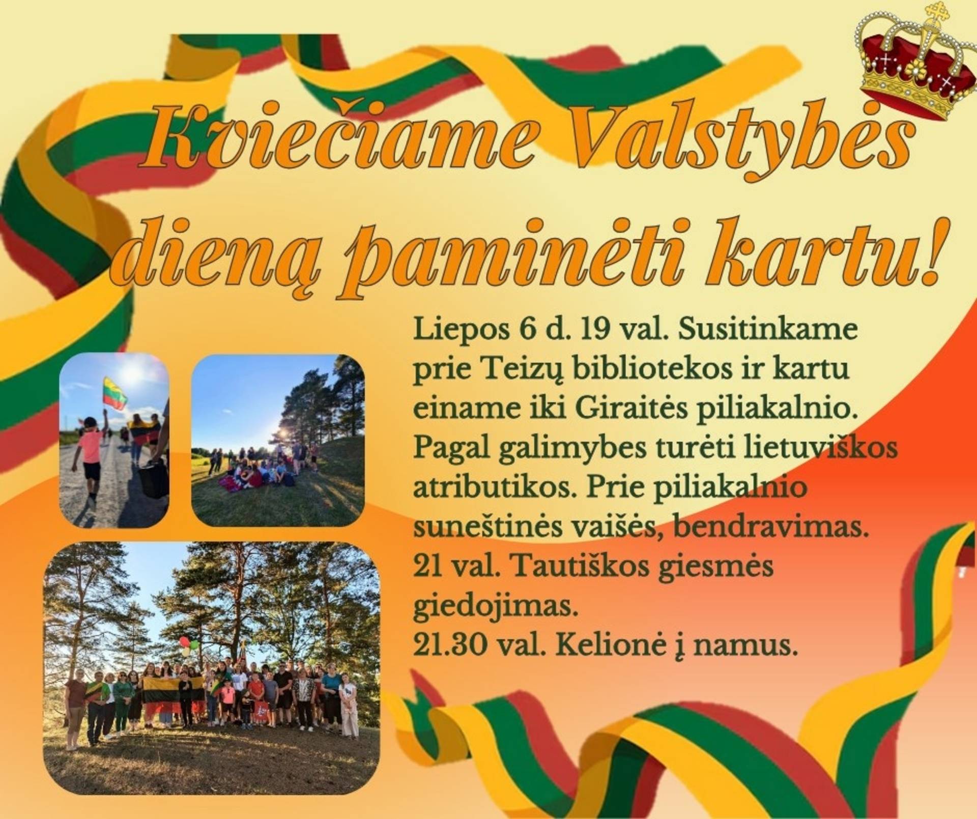 Zur Feier des Nationalfeiertags wird es eine Wanderung zum Giraitė-Hügel geben und dabei die Nationalhymne gesungen.