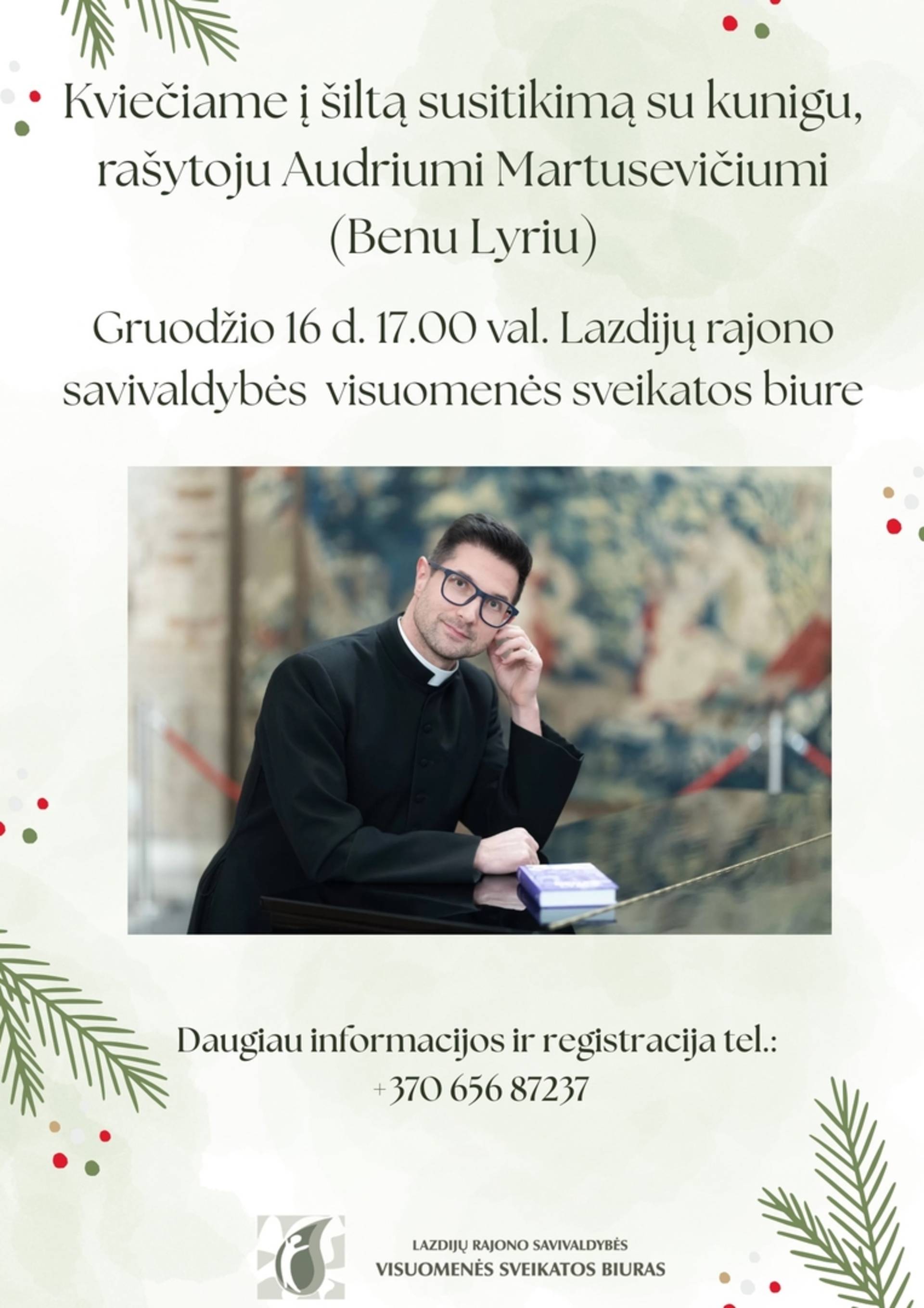 Wir laden Sie zu einem herzlichen Treffen mit dem Priester und Schriftsteller Audrius Martusevičius (Ben Lyris) ein.
