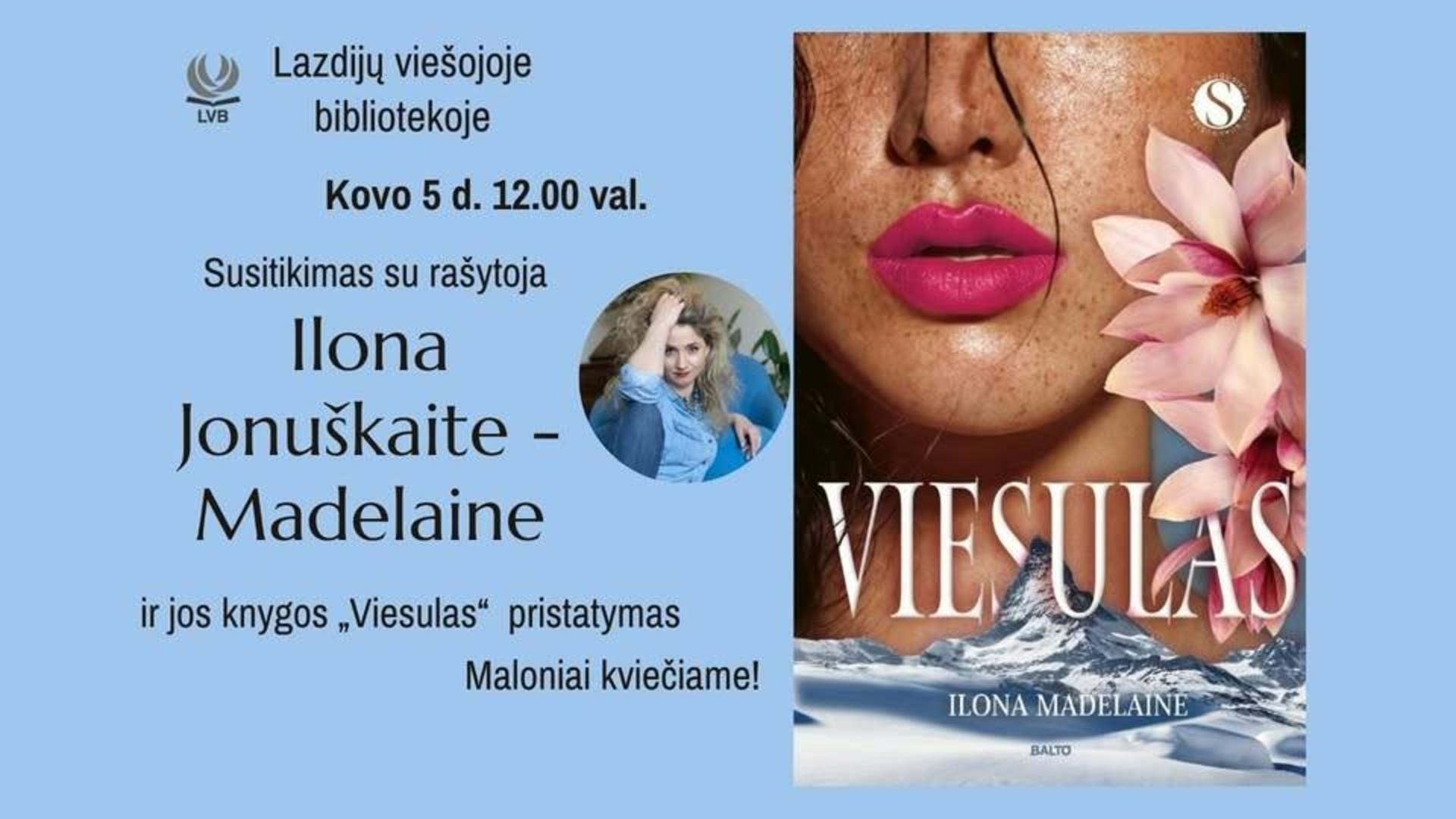 Öffentliche Bibliothek Lazdijai, 5. März. 12 Uhr lädt Sie zu einem Treffen mit Ilona Jonuškaitė-Madelaine aus Lazdija und der Präsentation ihres Buches „Viesulas“ ein.