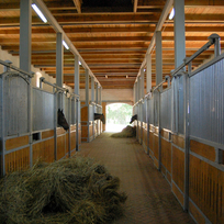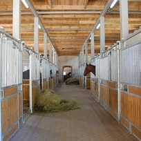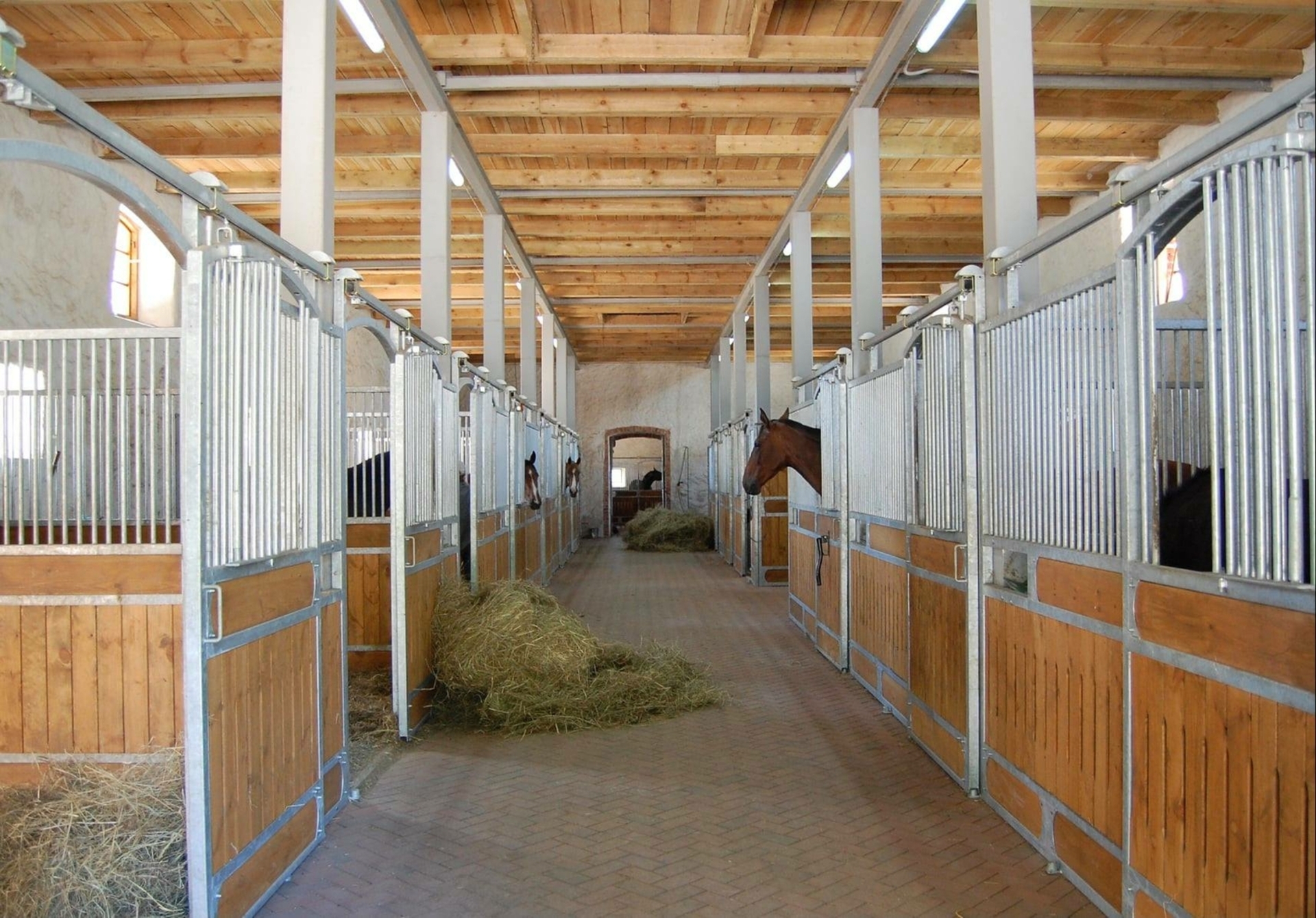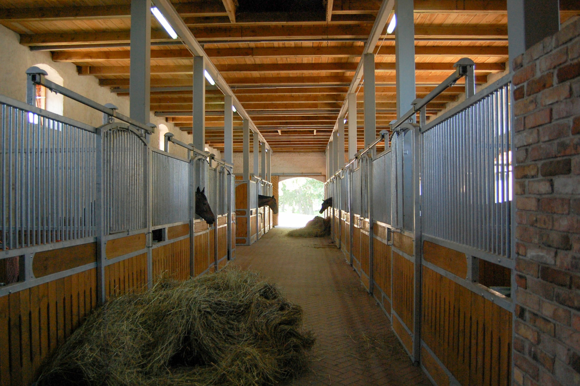 - Die Boxen werden täglich vom Reiter gereinigt, mit automatischen Tränken, Schiebetüren und einem Strohtrichter.
