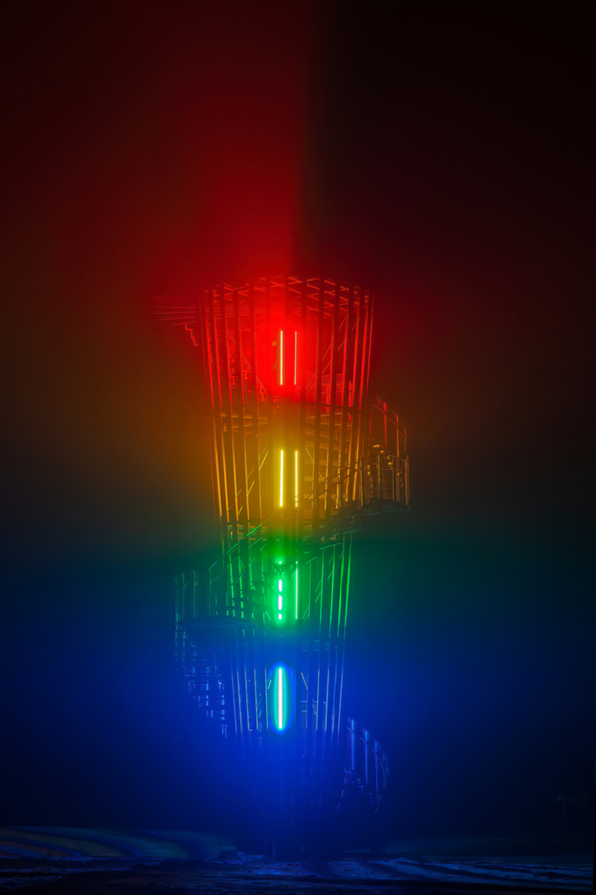 Der Autor des Fotos des beleuchteten Turms ist Aldas Liaukus.