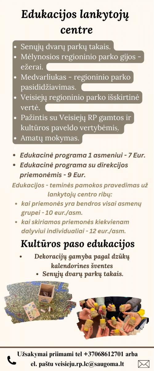 Veisiejų regioninio parko mokamų paslaugų kainynas spausti čia