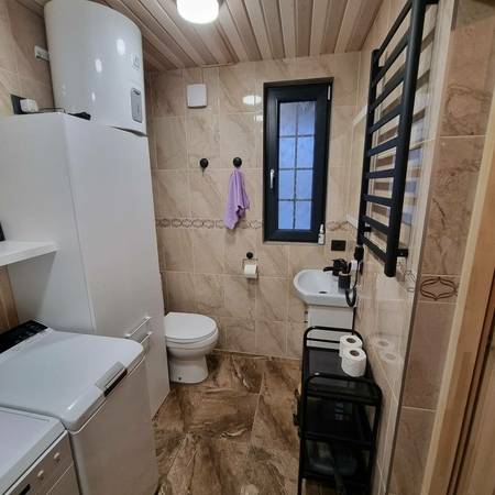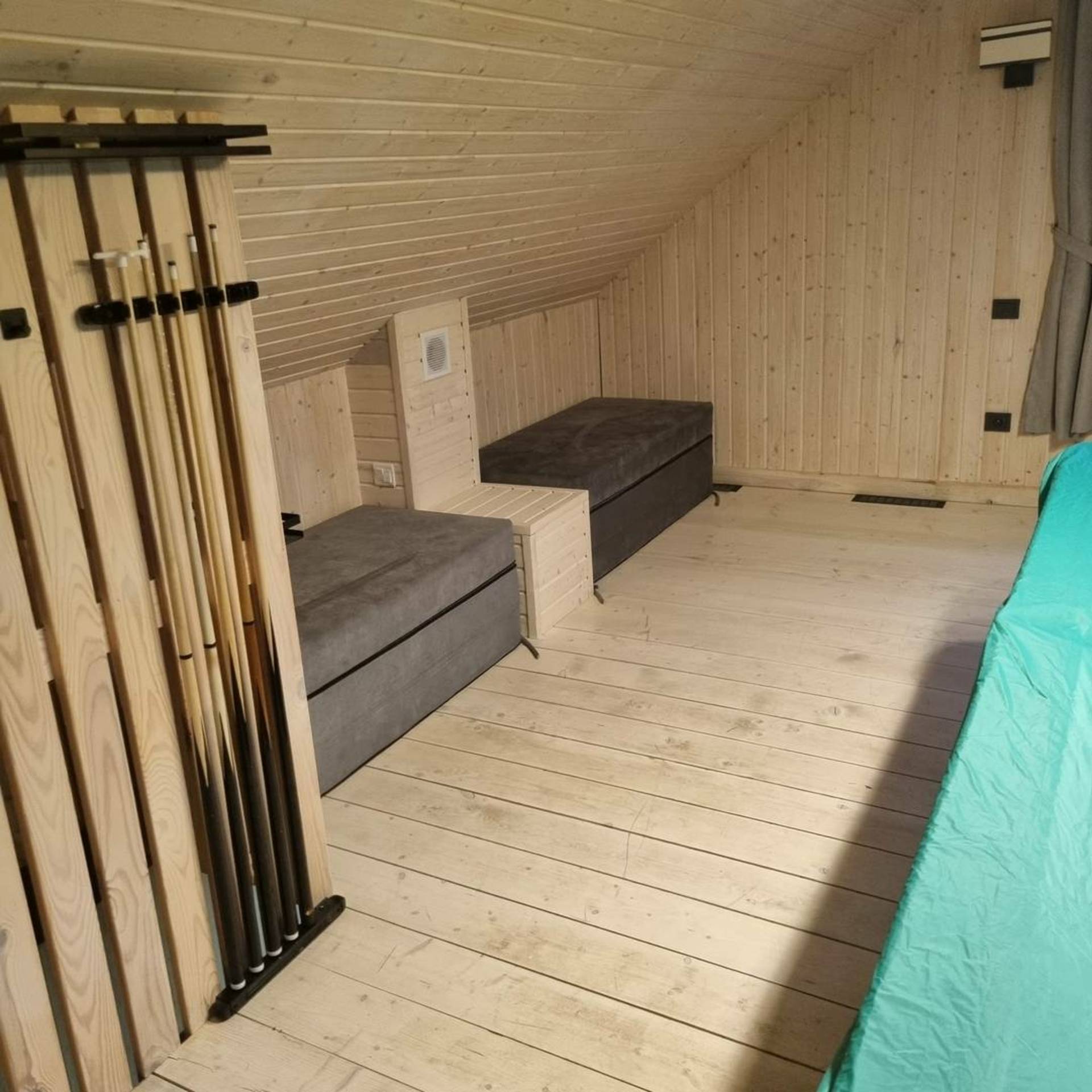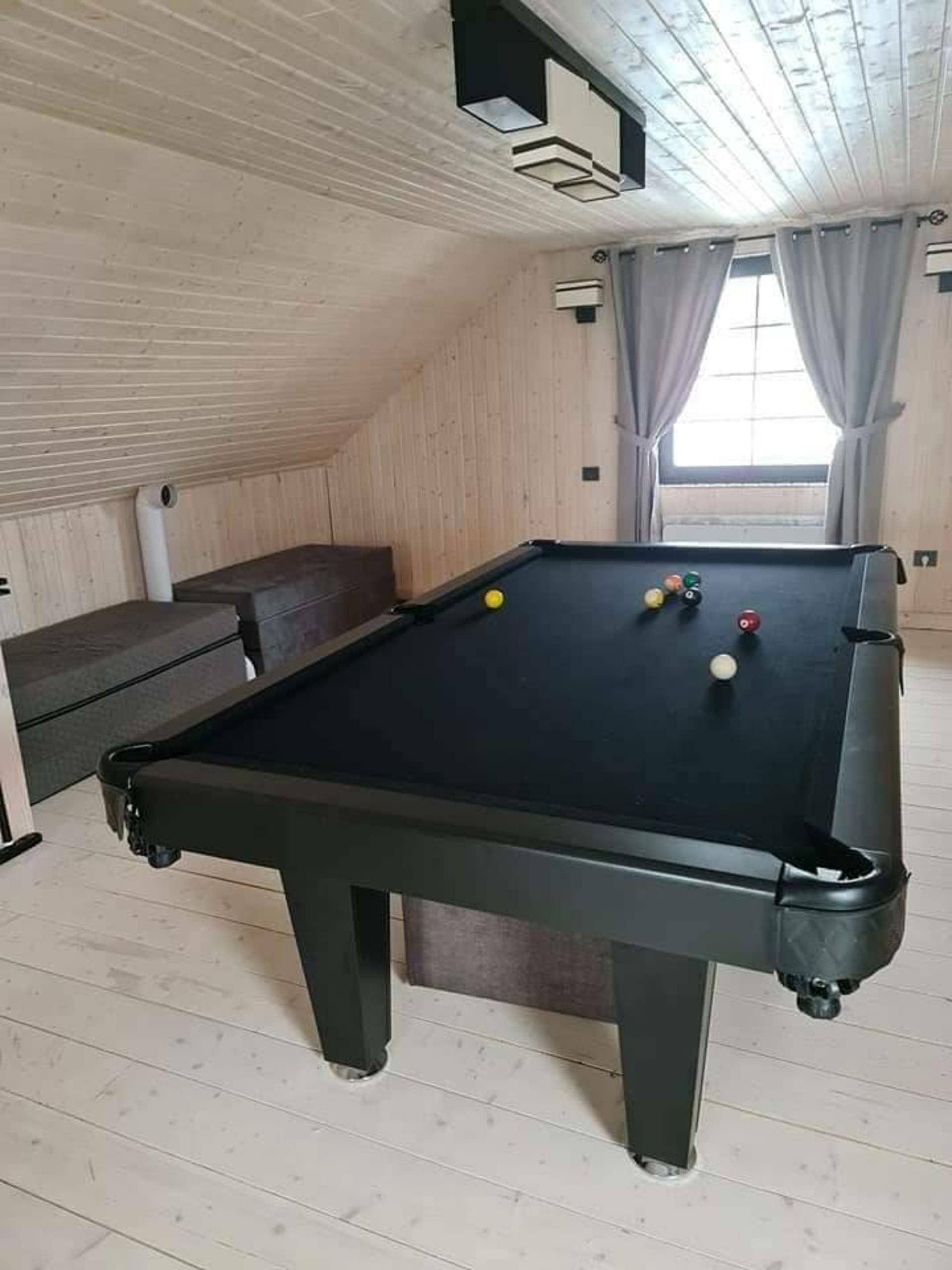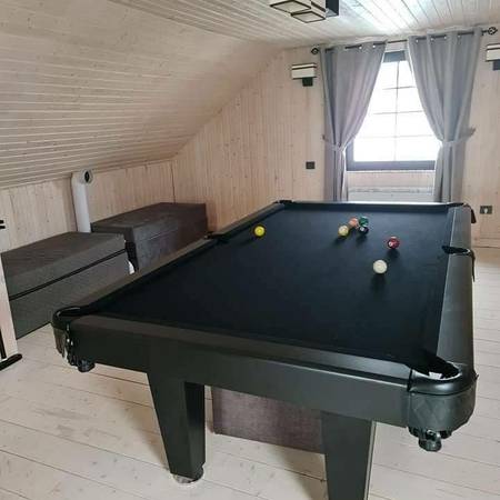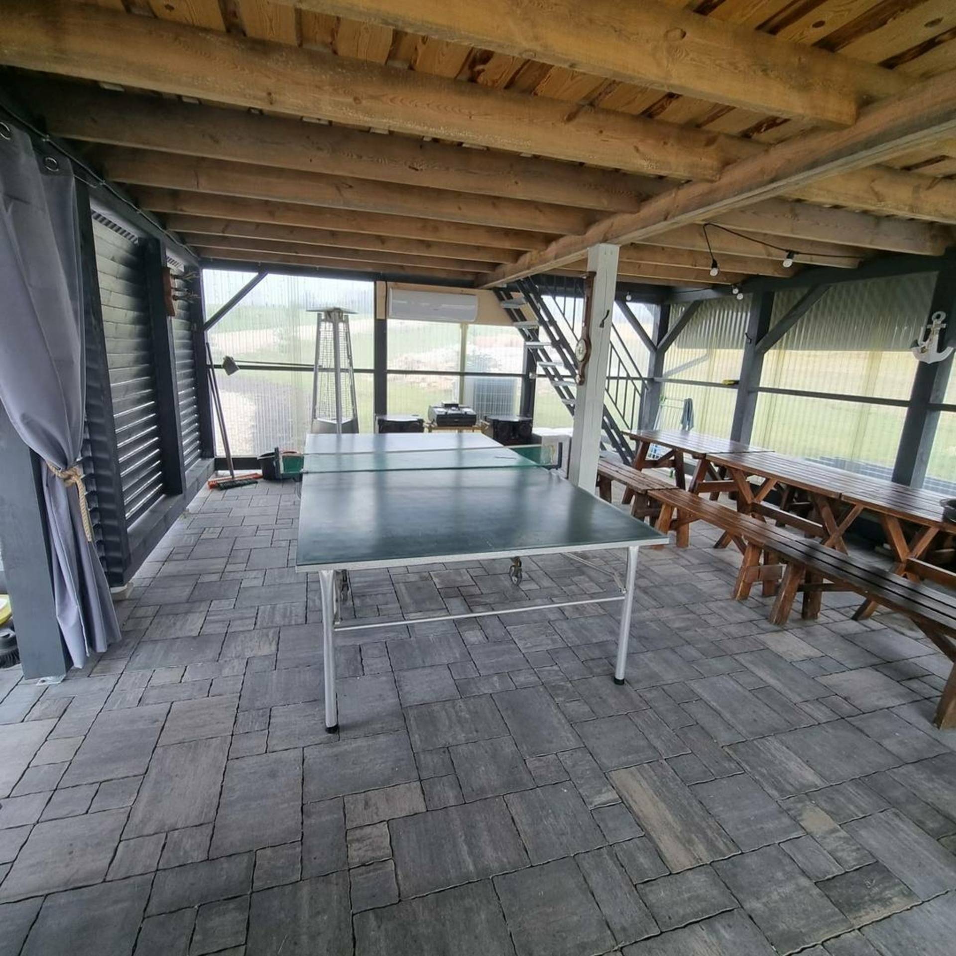 There is also a trampoline, a sandbox, and a swing for children. Volleyball, basketball, cornhole, darts, table tennis and pool table await you for a meaningful rest.
