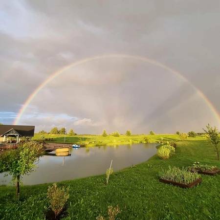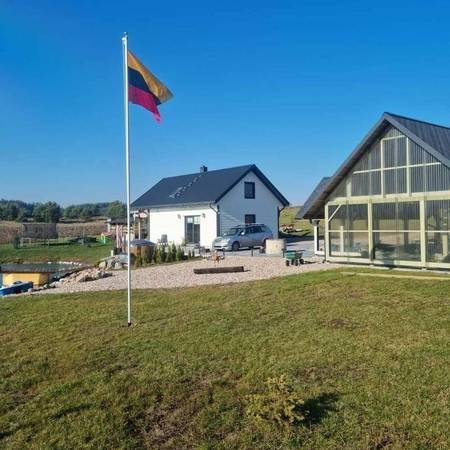 The homestead is located in Lazdija district, Panarvė km., very close to the Lazdija racecourse, 2 km from the city of Lazdija. Private territory, beautiful nature, a pond for swimming and fishing, the pond is suitable for swimming and children, you can ride a water bike in the pond.