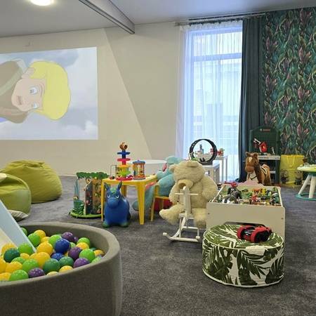 Here you will find interactive entertainment, fun, joyful games, a cozy children's playground, and a spacious area where you can enjoy a birthday cake with your friends.