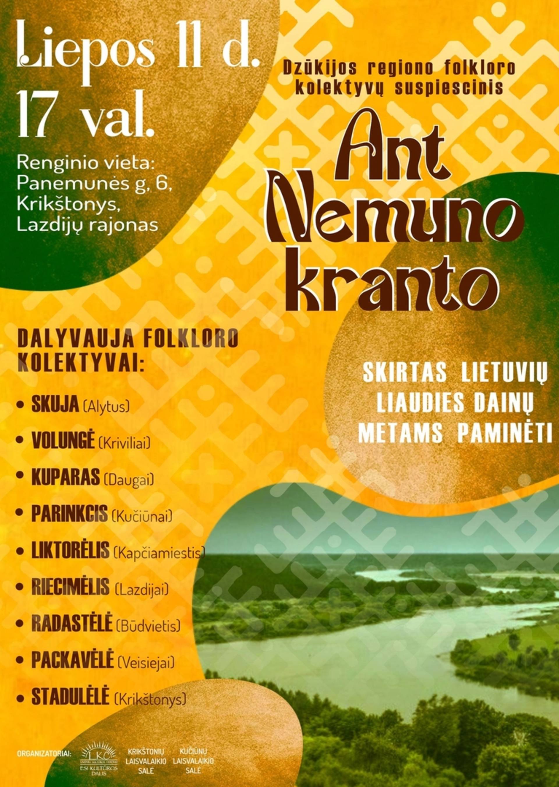July 11, 5 p.m. Concert of folklore groups of the Dzūkija region "On the banks of the Nemunas River", dedicated to the celebration of the Year of Lithuanian Folk Songs.