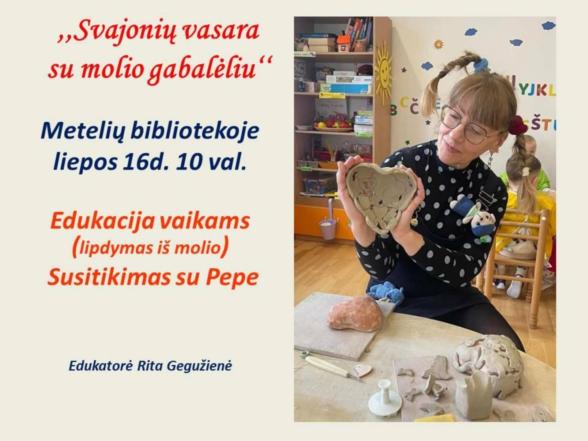 We invite all children, living here, vacationing here, and guests, to an education event, during which we will sculpt from clay and meet Pepe.