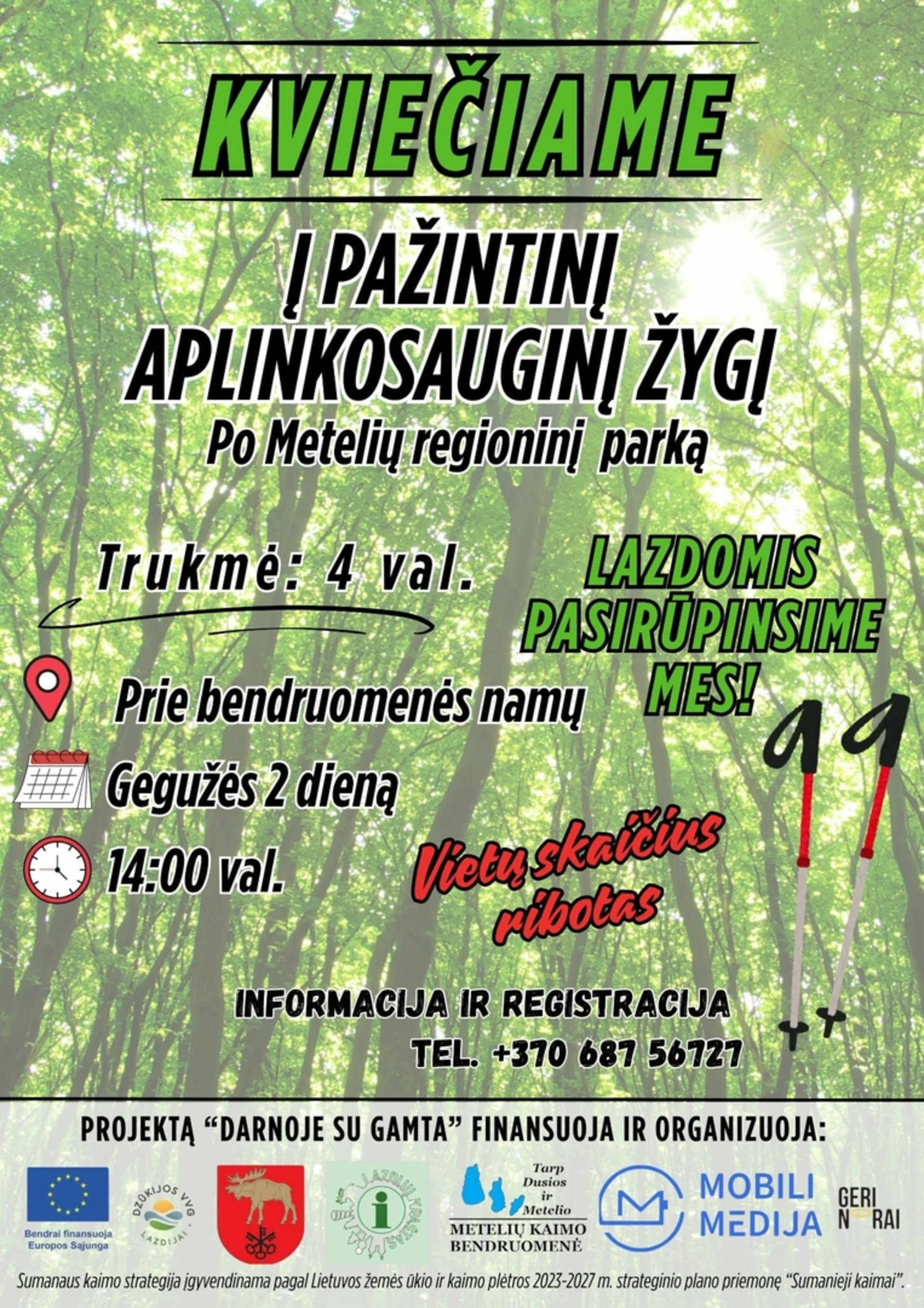 The Meteliai rural community "Between Dusia and Metelia" together with project partners is launching the project "In Harmony with Nature", aimed at promoting environmental awareness, active leisure and community spirit.
