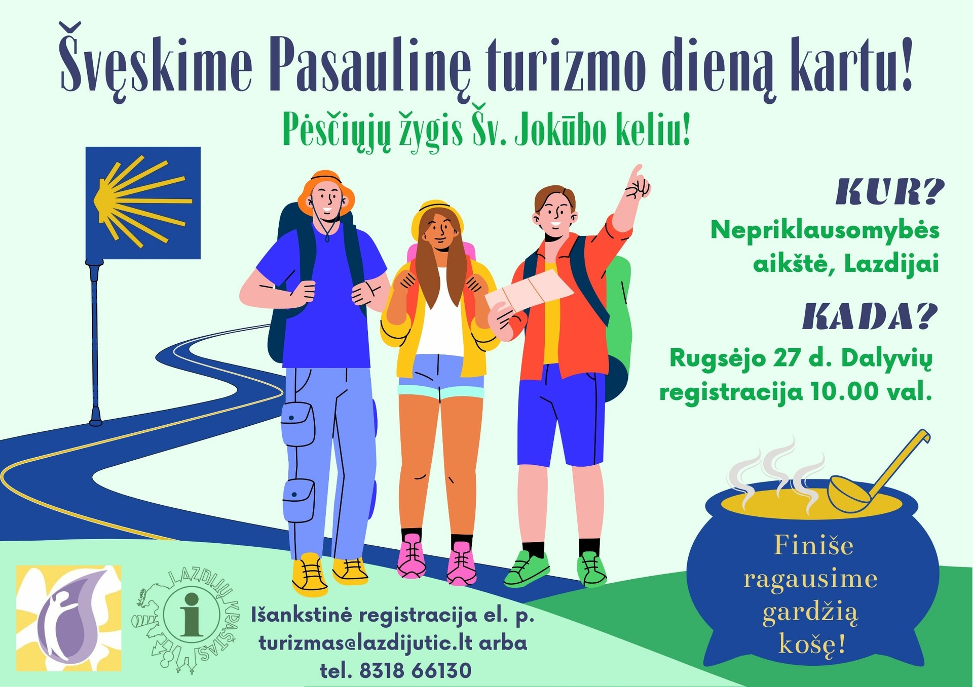 On Tuesday, September 27, we invite everyone to celebrate "World Tourism Day" by marching on St. The section of Jacob's Pilgrimage Path to Lazdijai-Lazdiju TIC Janaslav village. 10, Lazdiju district. The length of the route is ~15.5 km. You will be able to overcome this section with Nordic walking sticks, which will be provided by Lazdijai district. weekly public health office staff.
