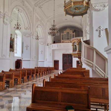According to historical sources, this neo-Baroque church, built in the former cemetery, is already the sixth one. In 1895, with the help from priest Liudvikas Adomaitis and funds and support of the parishioners, the shrine, built according to Feliksas Lipskis project, was consecrated by the bishop of Seinai, author of the poem “Anykščių šilelis” – Antanas Baranauskas. Church was given the title of St. Ann. Organ built by famous Lithuanian master Jonas Garalevičius is installed in the church.