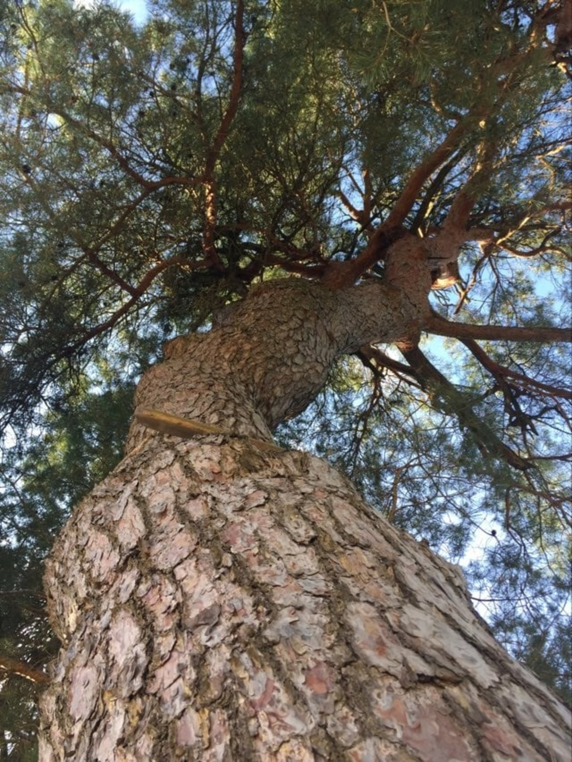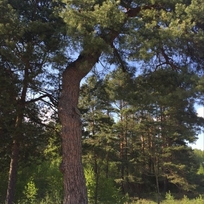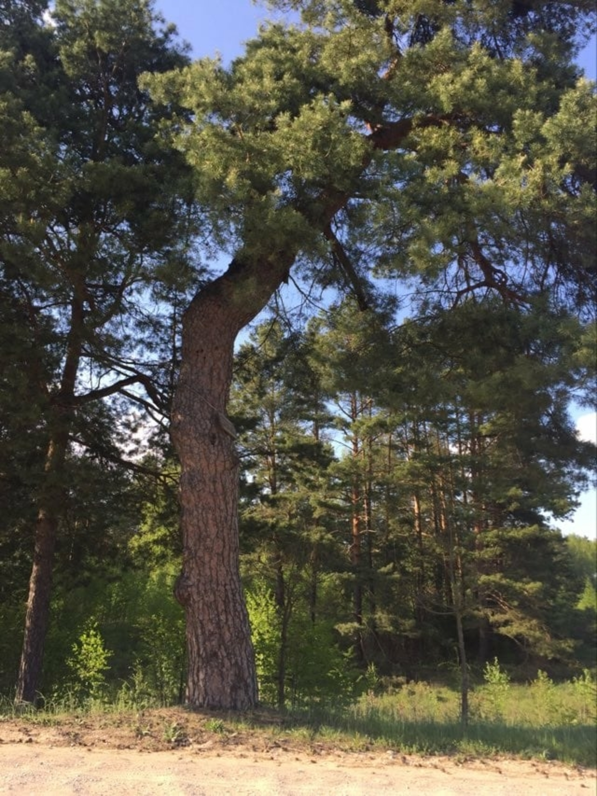 On the same road, in the neighborhood, grow several more single old pines. The pines of the landscape are distinguished by a slightly sloping and twisted trunk.