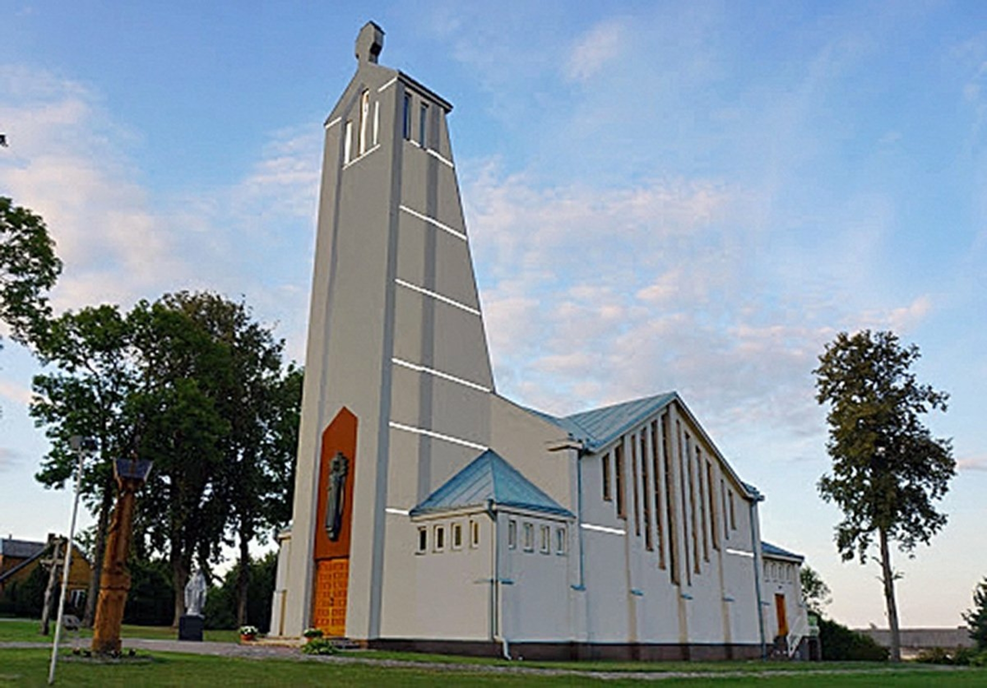 The first temporary church was wooden, built in 1907. Its construction was led by priest Juozas Galeckas. This church was demolished and its location marked with a memorial stone when a new brick church was built. St. Casimir's Church in Kučiūnai is modern, architect Algimantas Mikėnas. The new church was completed in 1996. It is a brick, single-tower, rectangular plan with a semicircular apse and a protruding porch. The architecture is laconic but expressive, the forms stylized. In the main façade, a tower of elongated proportions rises from the total volume of the plastic building. Portal - a rectangular opening, above which is built St. Sculpture of Casimir (author Juozas Šlivinskas). Inside the church there are three naves. They are separated by one pair of reinforced concrete columns. The retable of the high altar and the stations of the Way of the Cross were moved from the old wooden church to the new one.