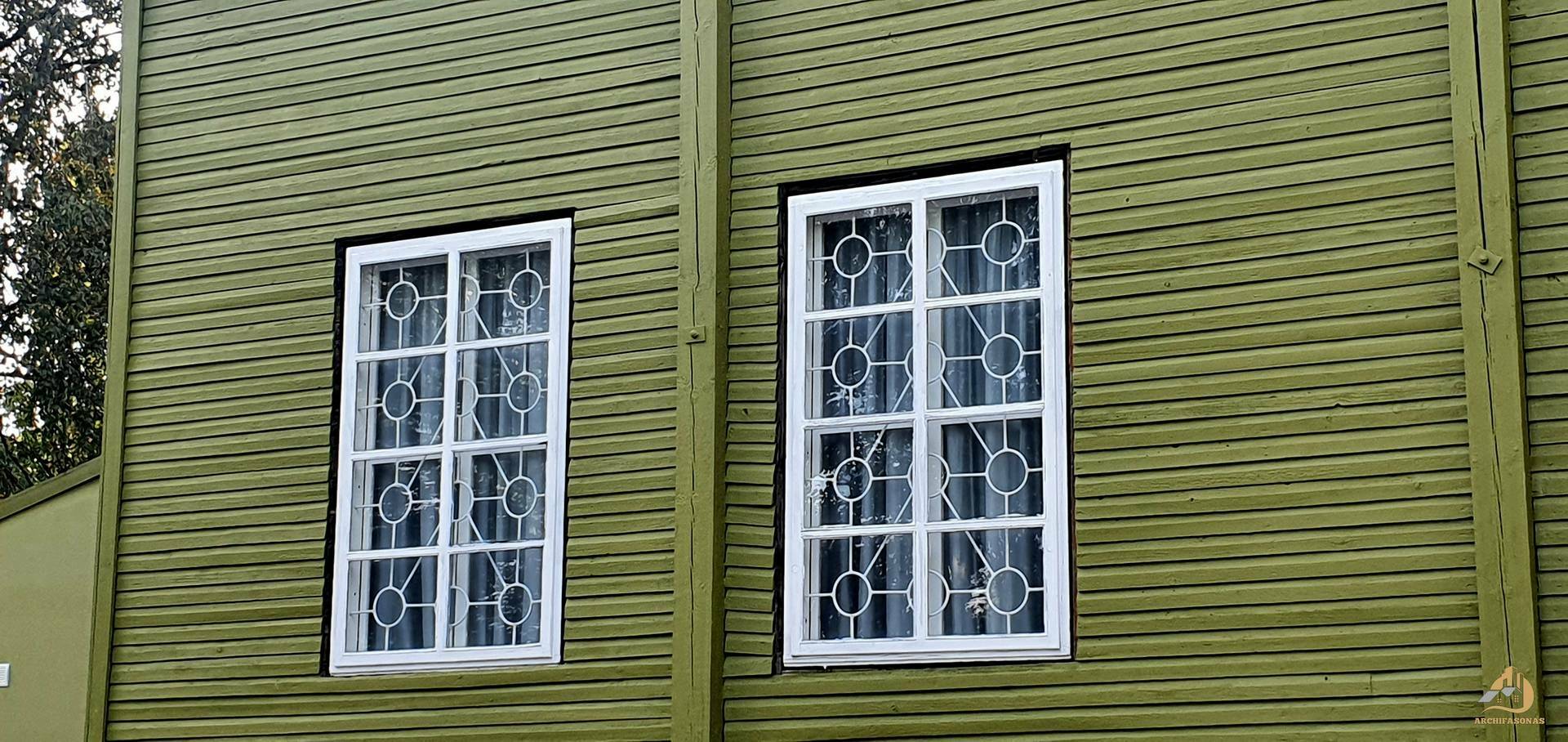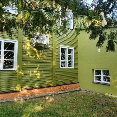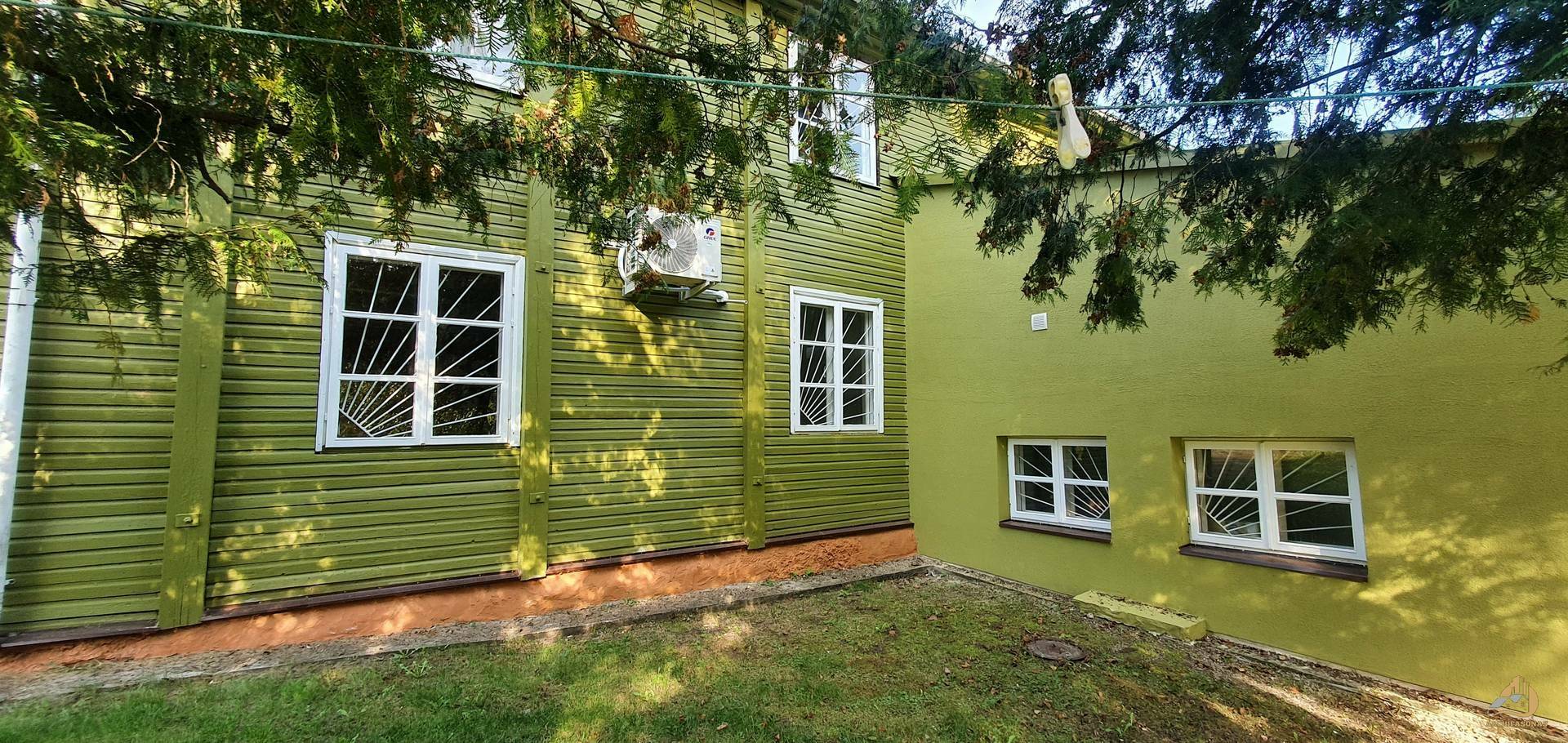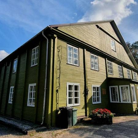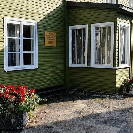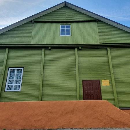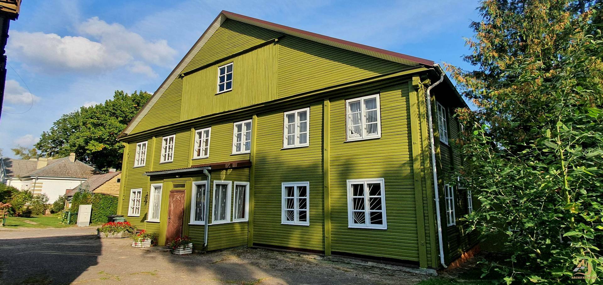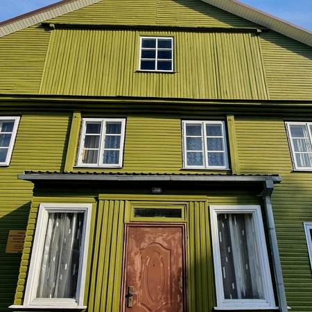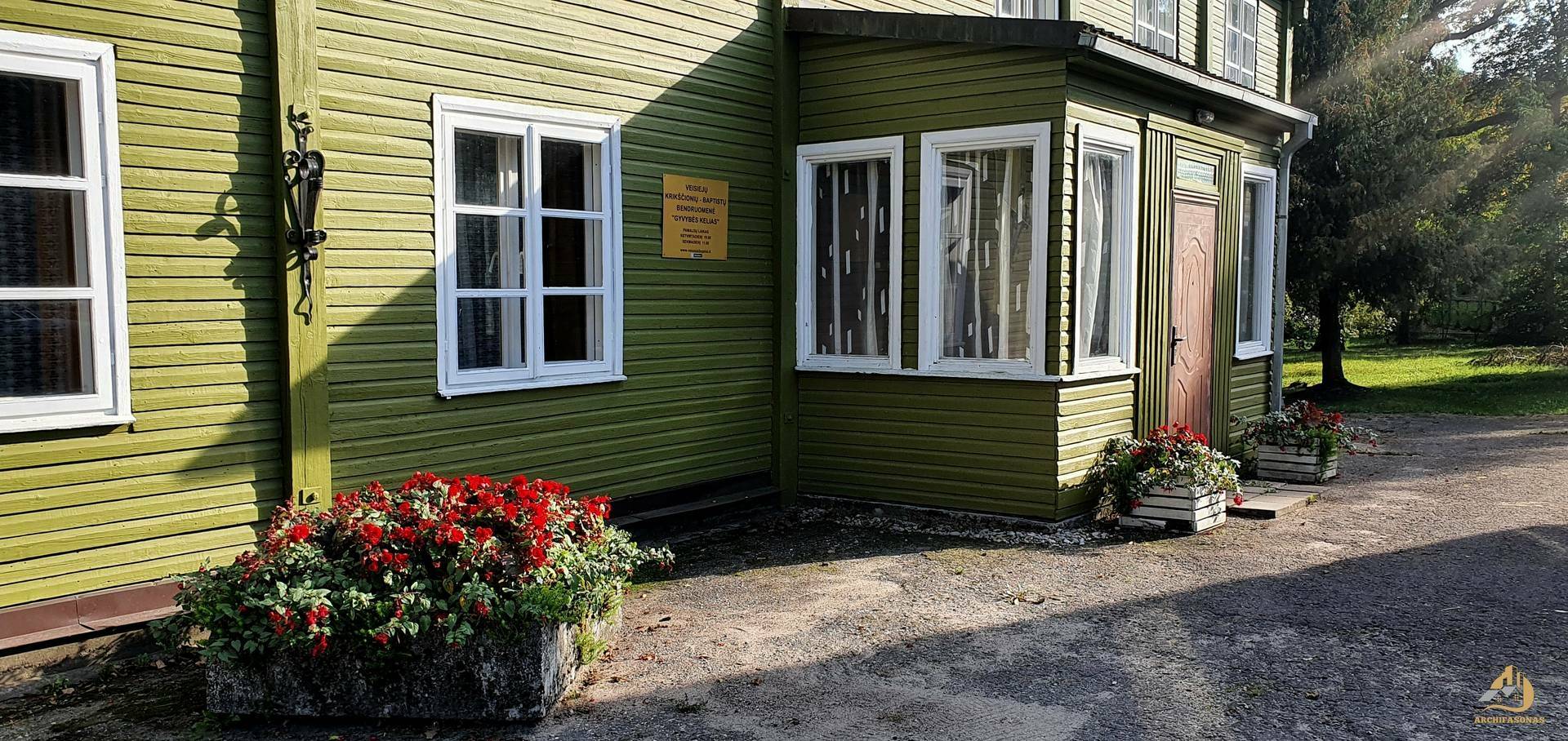 in 1748 with the first synagogue in Veisiejai, the history of local synagogues began - fire after fire and one synagogue was always replaced by another in the same place. The current wooden synagogue that has survived here was built in 1927. on the shore of Lake Ančias has almost kept its original form until today. The green-painted two-story building with a veranda-like porch and 12 large windows marking part of the former worship hall is a unique memory of the once multicultural town of Veisiei. The building itself has conditionally retained its function as a house of prayer - since 2004. a Baptist church meets here.