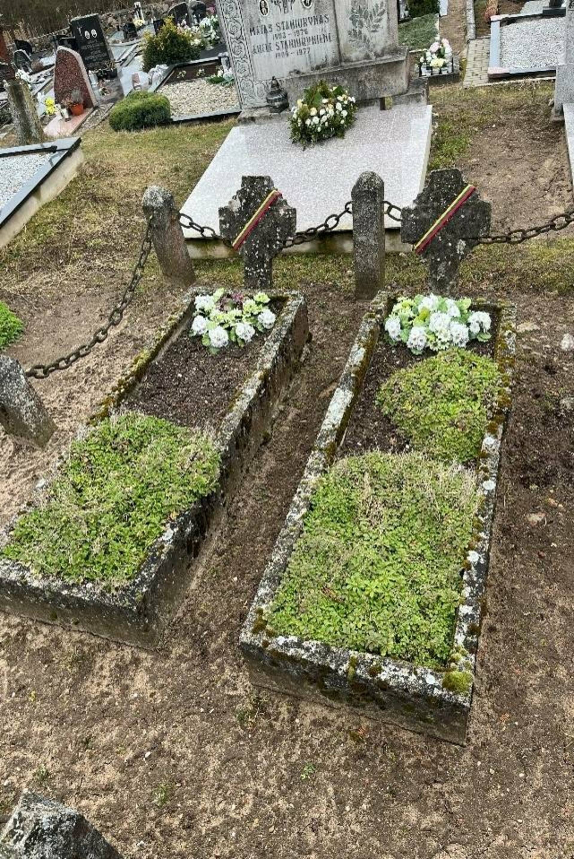 Palaidoti VI pėst. Pilėnų kunigaikščio Margio pulko 8-os kuopos eiliniai: Pranas Mickevičius ir Stasys Povilauskas, 1920-09-22 mūšio su Lenkijos kariuomene metu nukauti ties Seinų m., Smalėnų k. Yra duomenų, jog šiose kapinėse taip pat palaidotas (kario kryžius neišlikęs) VI pėst. Pilėnų kunigaikščio Margio pulko Marijampolės bataliono eilinis Povilas Krušniauskas, 1920-09-22 mūšio su Lenkijos kariuomene metu nukautas ties Seinų m., Smalėnų k.