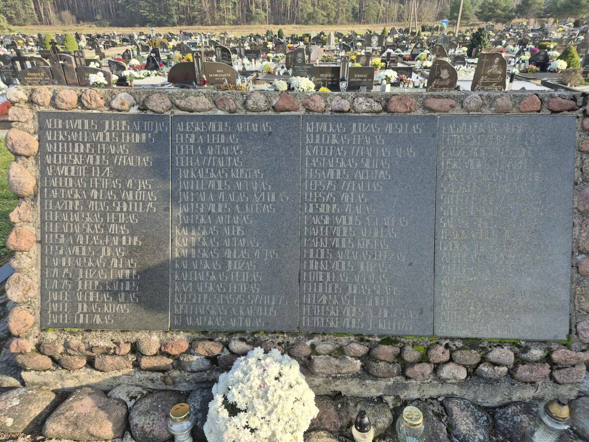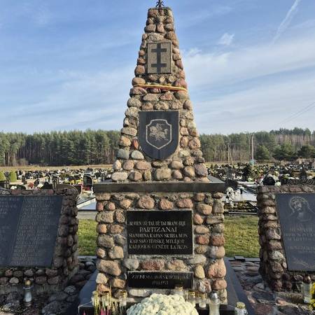 Antkapinis paminklas iš užkasimo vietų perkeltų ir šioje vietoje palaidotų 1944–1953 m. Lazdijų apylinkėse žuvusių Dainavos apygardos partizanų, įamžintų politinių kalinių ir tremtinių atminimui. Paminklo autorius Jurgis Nevulis, pastatytas 1993 metais.