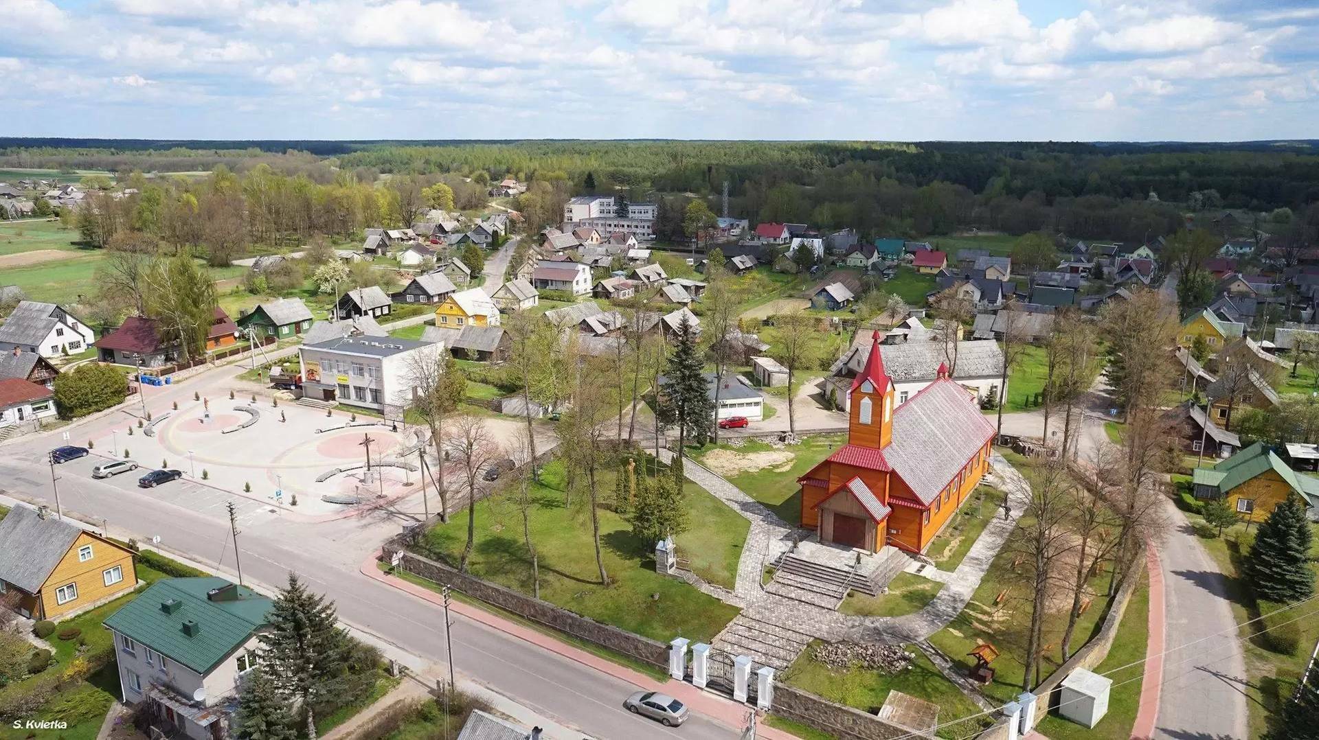1956 m. pastatyta medinė Kapčiamiesčio Dievo Apvaizdos katalikų bažnyčia.