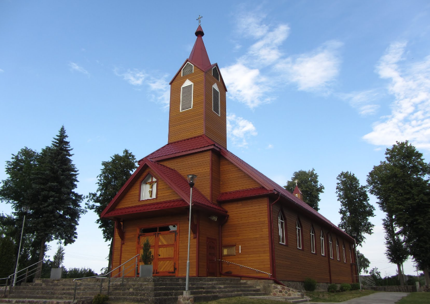Klebono Aleksandro Labanausko rūpesčiu ir padedant tikintiesiems 1956 m. pastatyta nauja dabartinė bažnyčia. Bažnyčia stačiakampio plano, vienabokštė, su prieangiu ir apside. Šventoriaus tvora akmenų mūro.