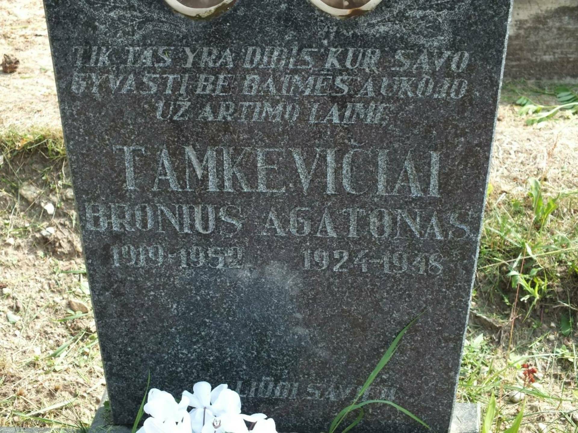 Agatonas Tamkevičius-Jaunutis, g. 1924 m. Šlapikų k., dab. Lazdijų r. Enkavėdistų suimtas 1945-01-23, kalintas Alytuje, 1945-06-29 išvežtas į Vorkutlagą, Komijoje. 1945-09-17 byla nutraukta, paleistas. 1947 m. gruodžio mėnesį tapo Dainavos apygardos Šarūno rinktinės Karininko Antano Juozapavičiaus tėvūnijos partizanu. Žuvo 1948-08-07 Seirijų vlsč. Antkapiniame paminkle simboliškai paminėtas brolis Dainavos apygardos partizanas Bronius Tamkevičius-Beržinis, g. 1919 m. Šlapikų k., dab. Lazdijų r., žuvęs 1952-08-22 Cijūniškės miške, Lazdijų r.