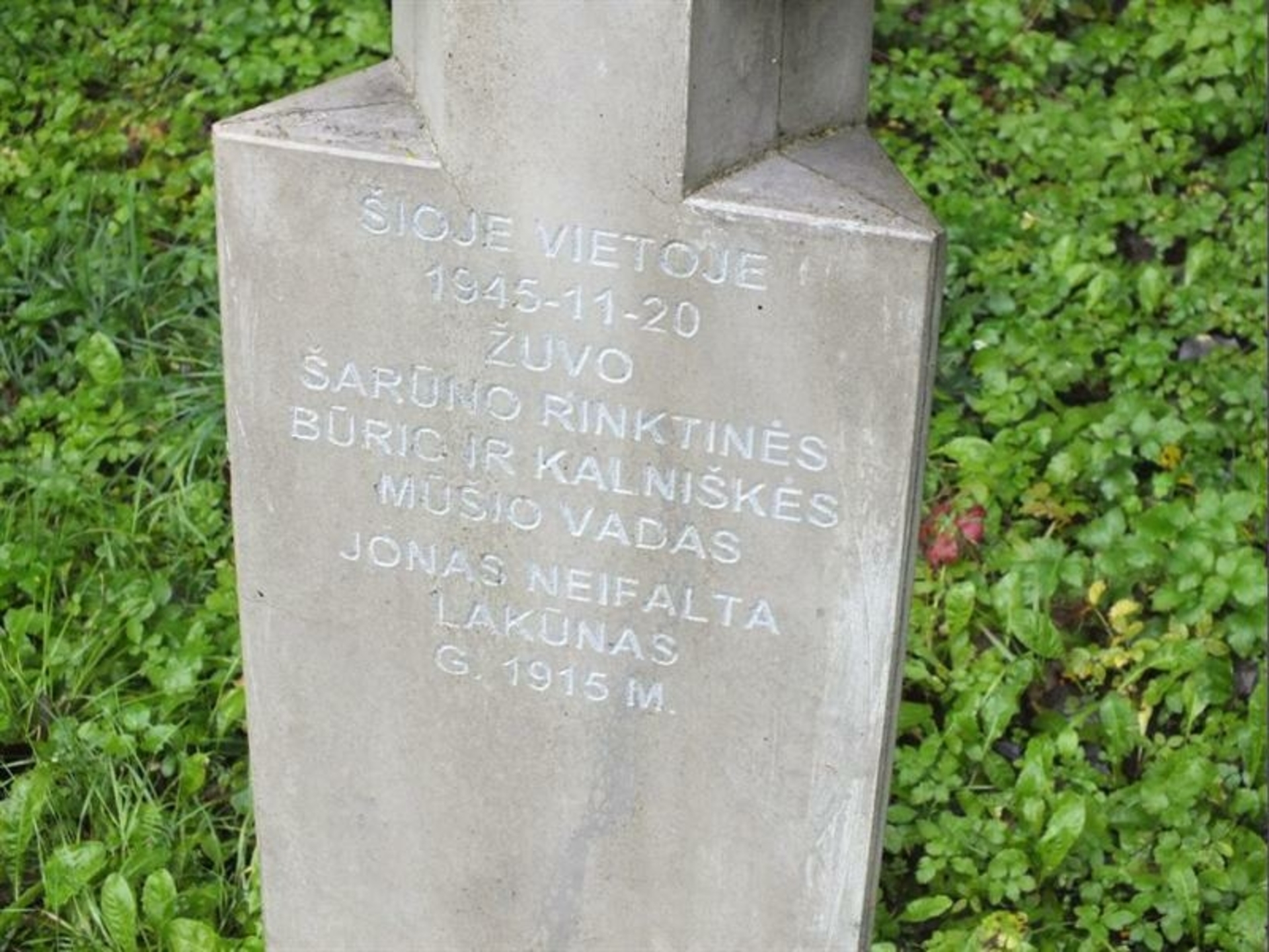 Šioje vietoje, 1945-11-20, kautynėse su čekistais žuvo Dzūkijos krašto (vėliau sukurtos Dainavos apygardos) partizanų būrio vadas Jonas Neifalta-Lakūnas, g. 1913 m., gyv. Giraitės k., Šventežerio vlsč., Seinų aps., dab. Lazdijų r. NKVD Krosnos vlsč. poskyrio ir pasienio kariuomenės kareivių karinei-čekistinei grupei apsupus partizanų būrį Atesninkų k., partizanai atsišaudydami traukėsi link Kalniškės miško, sužeistas vadas J. Neifalta-Lakūnas nukovė pribėgusį čekistą ir pats nusišovė. J. Neifalta-Lakūnas 1945-05-16 vadovavo 100-120 partizanų junginiui viename didžiausių ir tragiškiausių Kalniškių mūšyje su kelis kartus gausesnėmis NKVD pajėgomis.