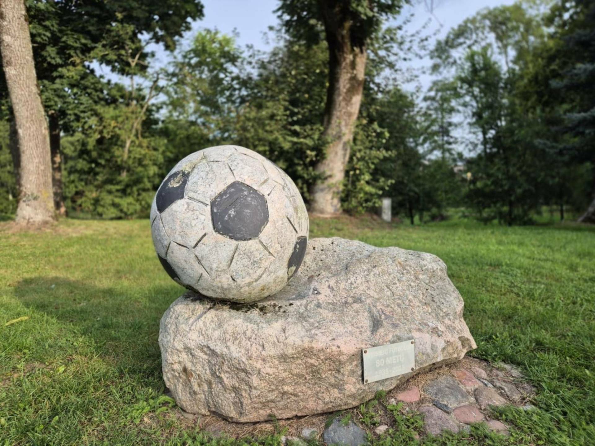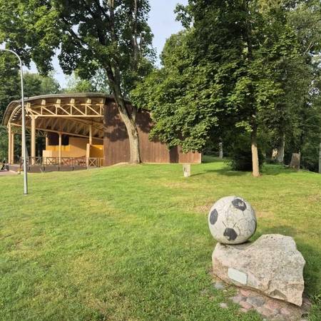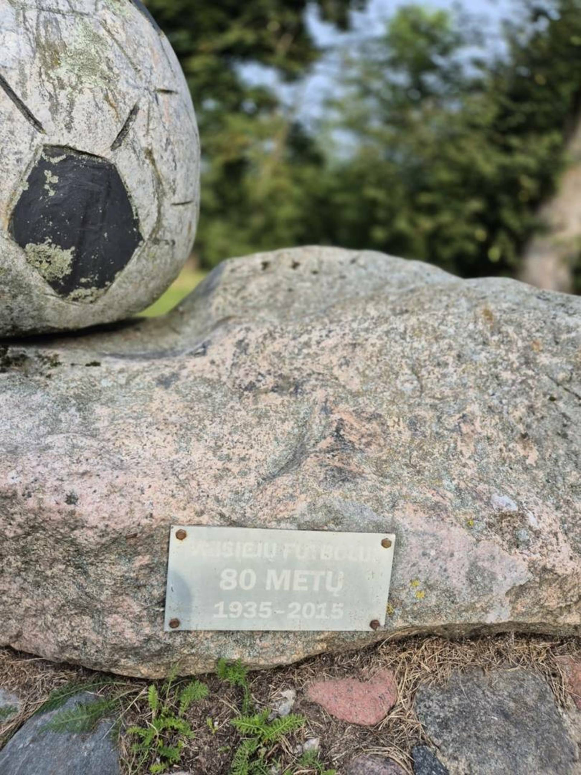 Paminklas Veisiejų futbolui pastatytas 2015 m. Veisiejų dvaro parke. Ši skulptūra skirta paminėti Veisiejų futbolo 80-metį. Akmeninė skulptūra sukurta tarptautinio Veisiejų menininkų plenero metu.