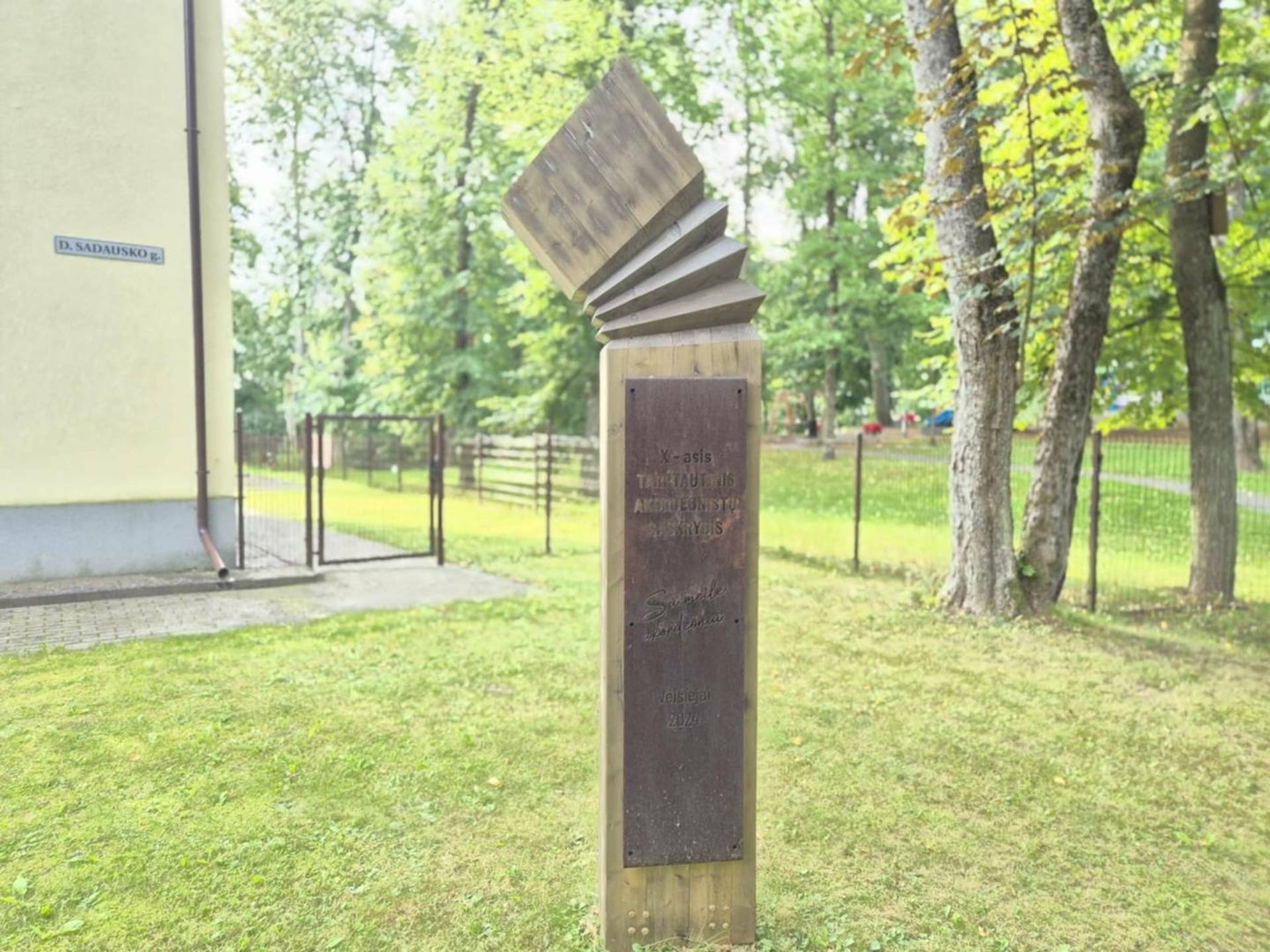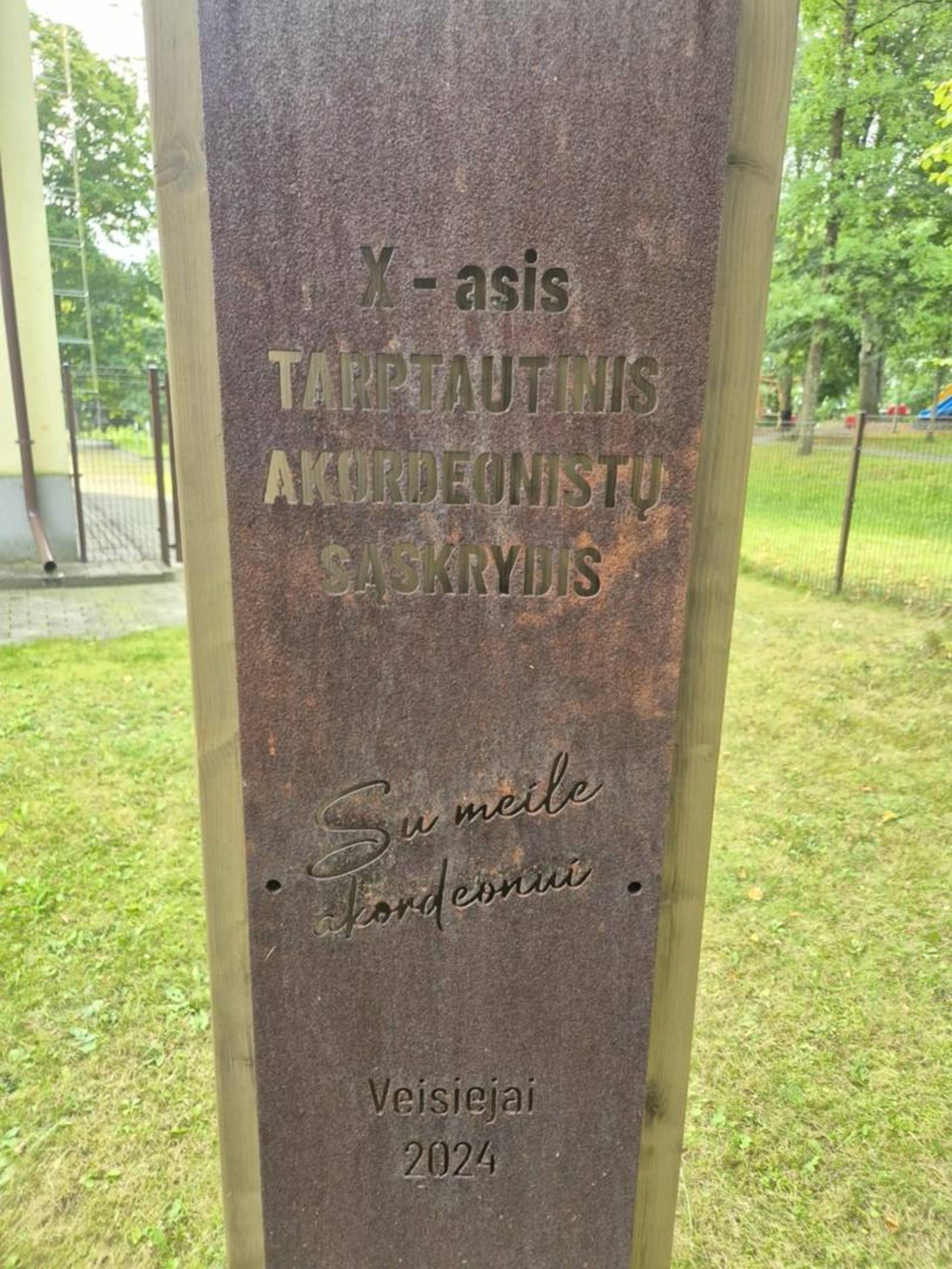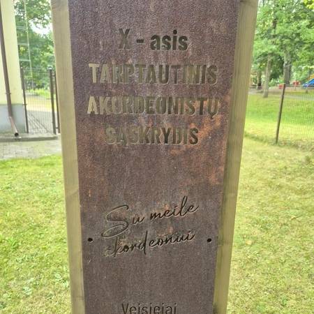 Irinos Gudebskienės mokinio Gusto Jančiaus iniciatyva, siekiant įamžinti X-ąjį akordeonistų sąskrydį, buvo sumanyta pastatyti skulptūrą. Šią idėją, nuo projekto iki galutinio rezultato, įgyvendino menininkas-drožėjas G. Jančiaus tėtis V. Jančius. Skulptūrą "Su meile akordeonui" galite pamatyti šalia Veisiejų kultūros namų.