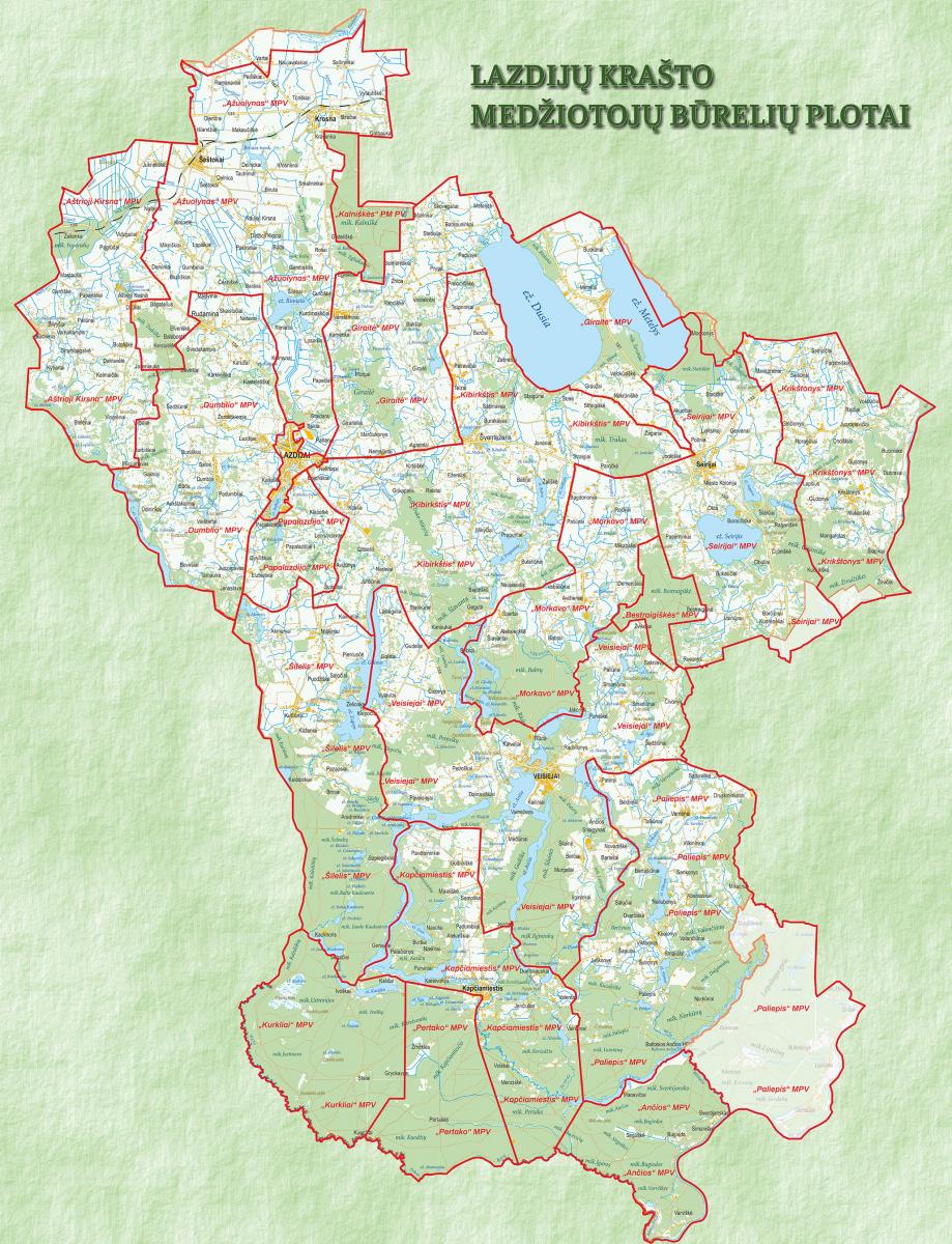 Lazdijų rajono medžioklės būrelių plotų žemėlapis
