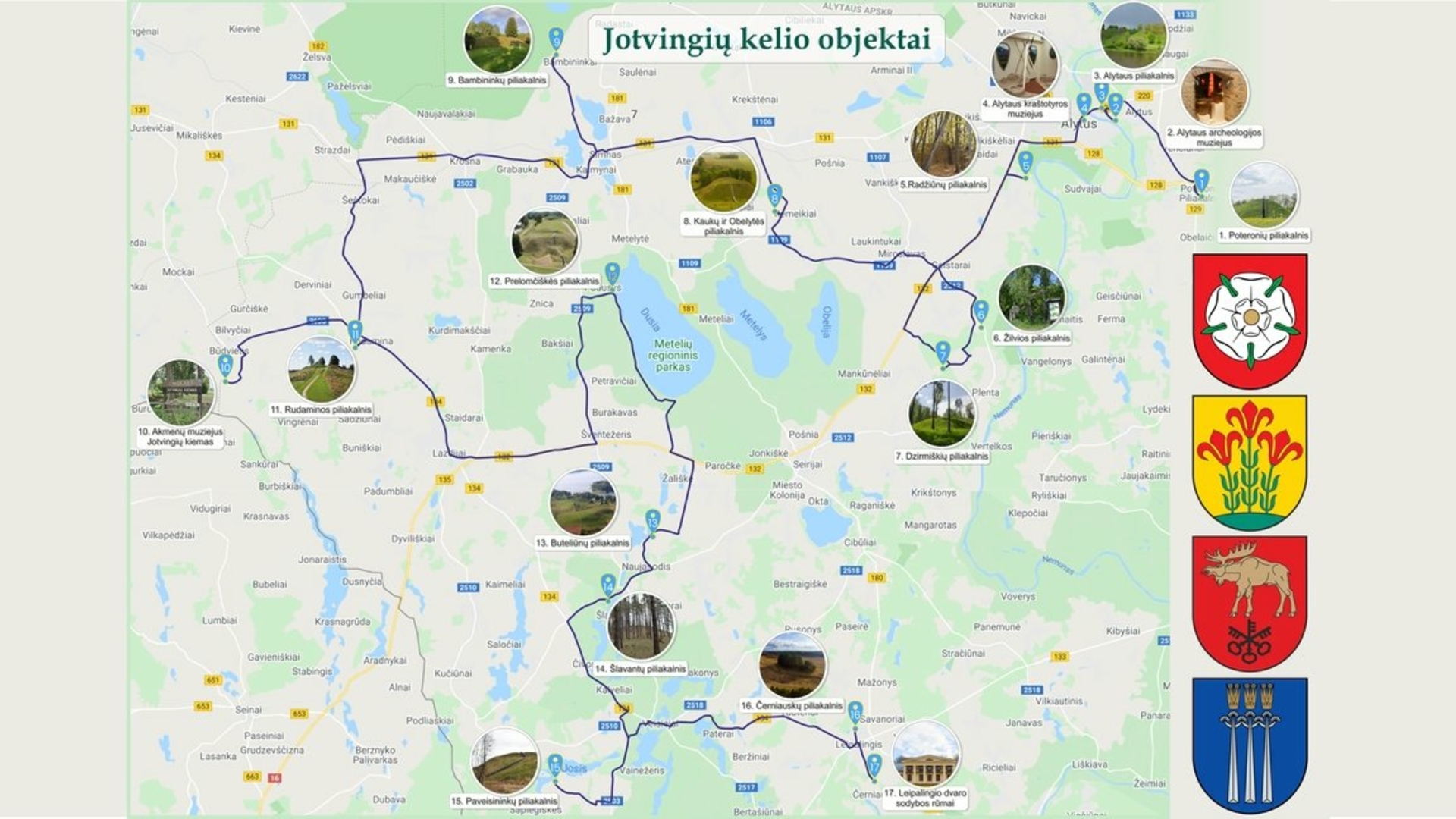 Jotvingių kelio maršrutas vingiuoja per keturias Pietų Lietuvos savivaldybes. Keliaudami Alytaus miesto ir rajono bei Lazdijų ir Druskininkų rajonų savivaldybes jungiančiu maršrutu pažinsite didingosios jotvingių genties istoriją ir palikimą. Maršrutą sudaro net 17 su istorine jotvingių praeitimi susijusių objektų.