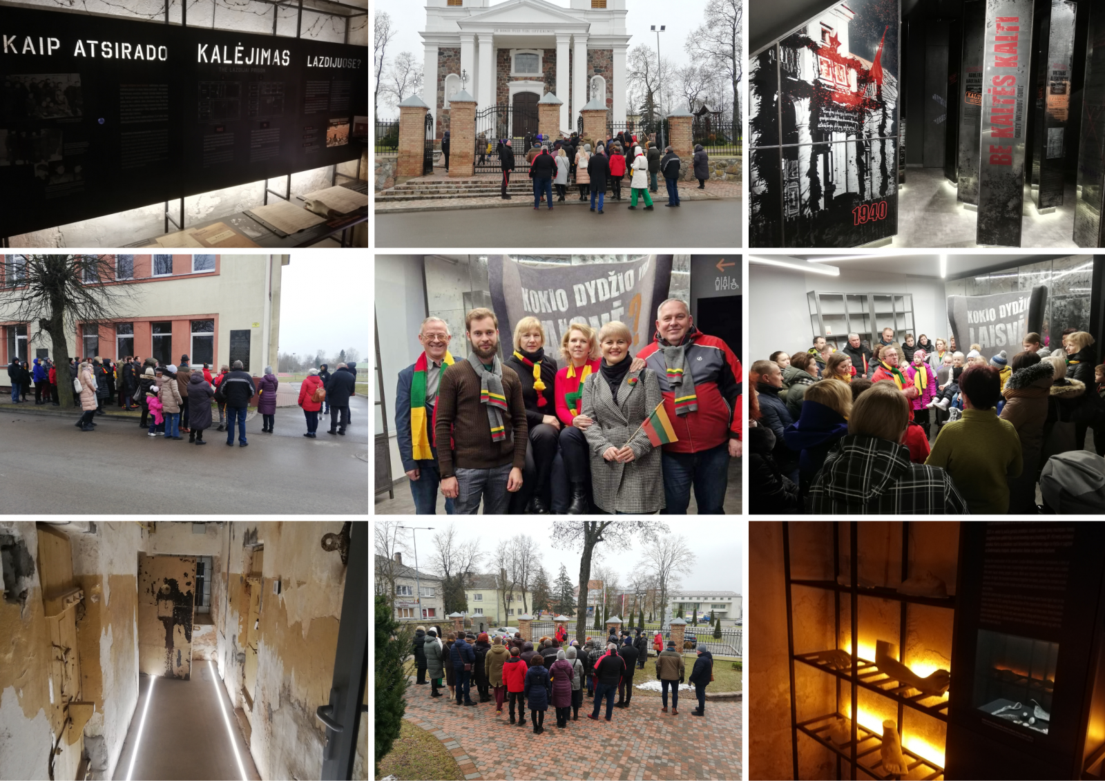 Vakar Lietuvos valstybės atkūrimo dienos proga vyko ekskursija „Kartu-Laisvės keliu“ su gidu Jonu Malinausku. Keliavome nuo Lazdijų Nepriklausomybės aikštės iki A. Ramanausko – Vanago aikštės, aplankėme Šv. Onos bažnyčią. Prie pirmosios lietuviškos vėliavos Lazdijuose iškėlimo vietos uždegėme atminimo žvakutes 1919-1920 metų Nepriklausomybės kovų Lazdijų valsčiaus Vyties Kryžiaus kavalieriams: Grigorijus Majorovas (1889-1916), Jonas Navickas (1899-1975), Petras Vitkauskas (1896-1922), Jonas Žmuidzinavičius (1894-1942), Kostas Žukauskas (1899-1958) bei 1919-1920 metų Nepriklausomybės kovų Lazdijų valsčiaus savanoriams. O paskutinė įsimintiniausia ekskursijos vieta – Laisvės kovų muziejus. Interaktyvios ekspozicijos, menančios praeities siaubą, tragiškus likimus, įtraukė visus ekskursijos dalyvius, o pabuvojus rūsyje esančiose kalėjimo kamerose per kūną bėgiojo šiurpuliukai. Muziejuje girdimi garsai, istorijos, pokario dainos, sendintuose veidrodžiuose matomi persipinantys praeities ir dabarties vaizdai užgniaužė kvapą ir nepaliko nei vieno abejingo. Dėkojame Laisvės kovų muziejaus vyr. muziejininkei Jūratei Paciukonienei už įdomų pasakojimą! Taip pat ačiū gidui Jonui Malinauskui, mūsų renginio partneriui Lazdijų krašto muziejuj bei gausiam būriui ekskursijos dalyvių!