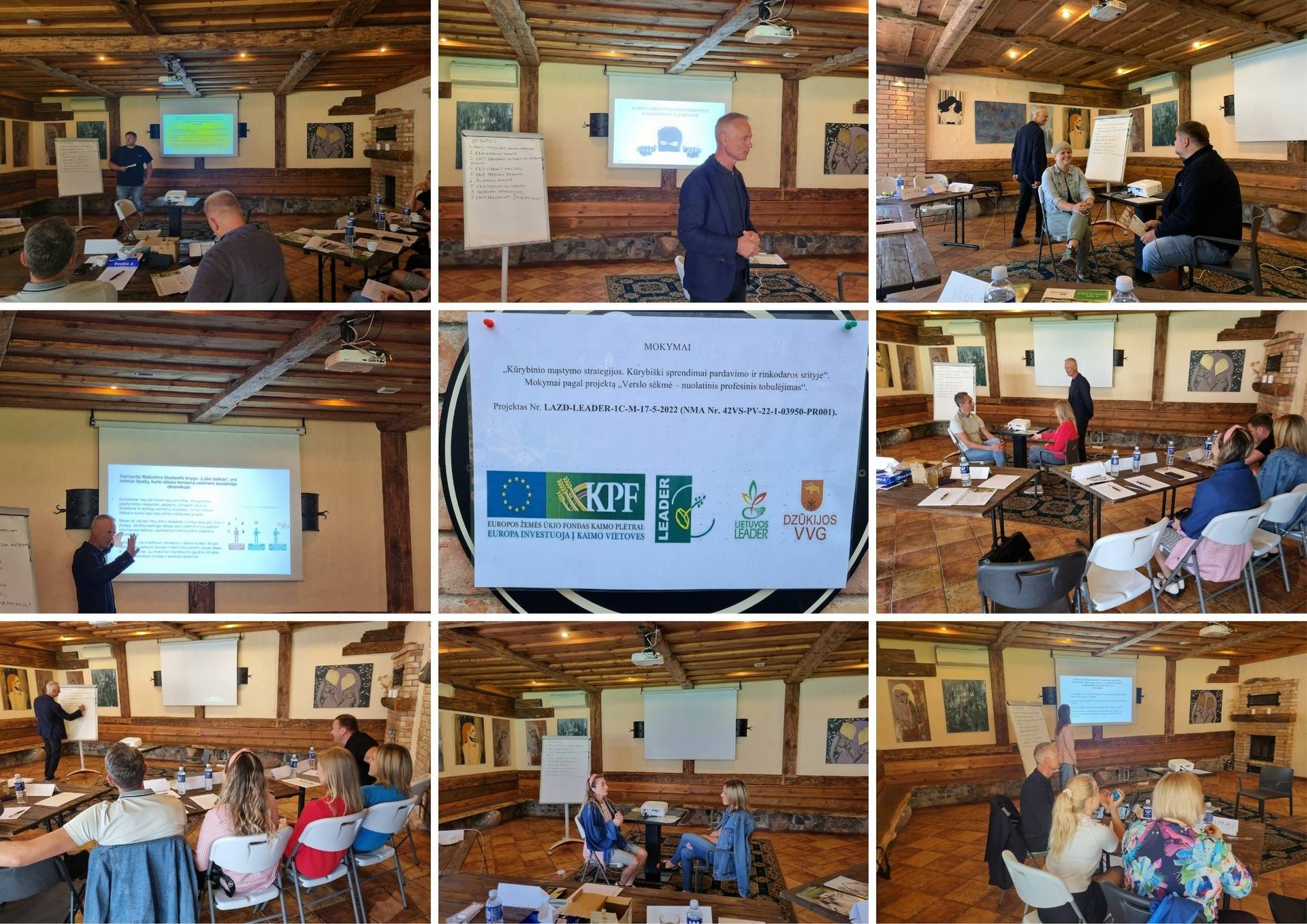 Rugsėjo 8 dieną kaimo turizmo sodyboje „Vitrūna“ vyko mokymai „Kūrybinio mąstymo strategijos. Kūrybiški sprendimai pardavimo ir rinkodaros srityje.“ Mokymai pagal projektą „Verslo sėkmė – nuolatinis profesinis tobulėjimas“. Projektas Nr. LAZD-LEADER-1C-M-17-5-2022 (NMA Nr. 42VS-PV-22-1-03950-PR001). Mokymus vedė lektorius Darius Radkevičius. Labai džiaugiamės dalyvių įsitraukimu, gebėjimu kūrybiškai spręsti praktines užduotis, žvelgti į susiklosčiusias situacijas iš įvairių požiūrio kampų, įsijausti ne tik į pardavėjo, bet ir pirkėjo rolę. Tikimės, jog šie mokymai sustiprino esamas kompetencijas, skatino žvelgti inovatyviai. Projektas finansuojamas NMA (Nacionalinės mokėjimo agentūros) iš EŽŪKFP ir Lietuvos Respublikos valstybės biudžeto lėšų pagal priemonę ,,Parama vietos projektų pareiškėjų ir vykdytojų mokymams konkurencingumo didinimo, įgūdžių įgijimo, inovatyvumo vystymo srityse“.