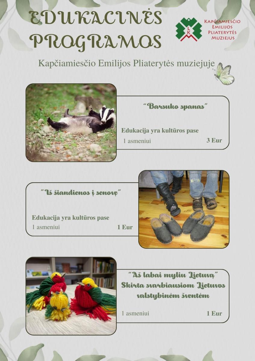 - Oferujemy 8 programów edukacyjnych odpowiednich zarówno dla dzieci, jak i dorosłych. Pięć z nich znajdziesz również w Paszporcie Kultury: https://www.kulturospasas.lt/ .