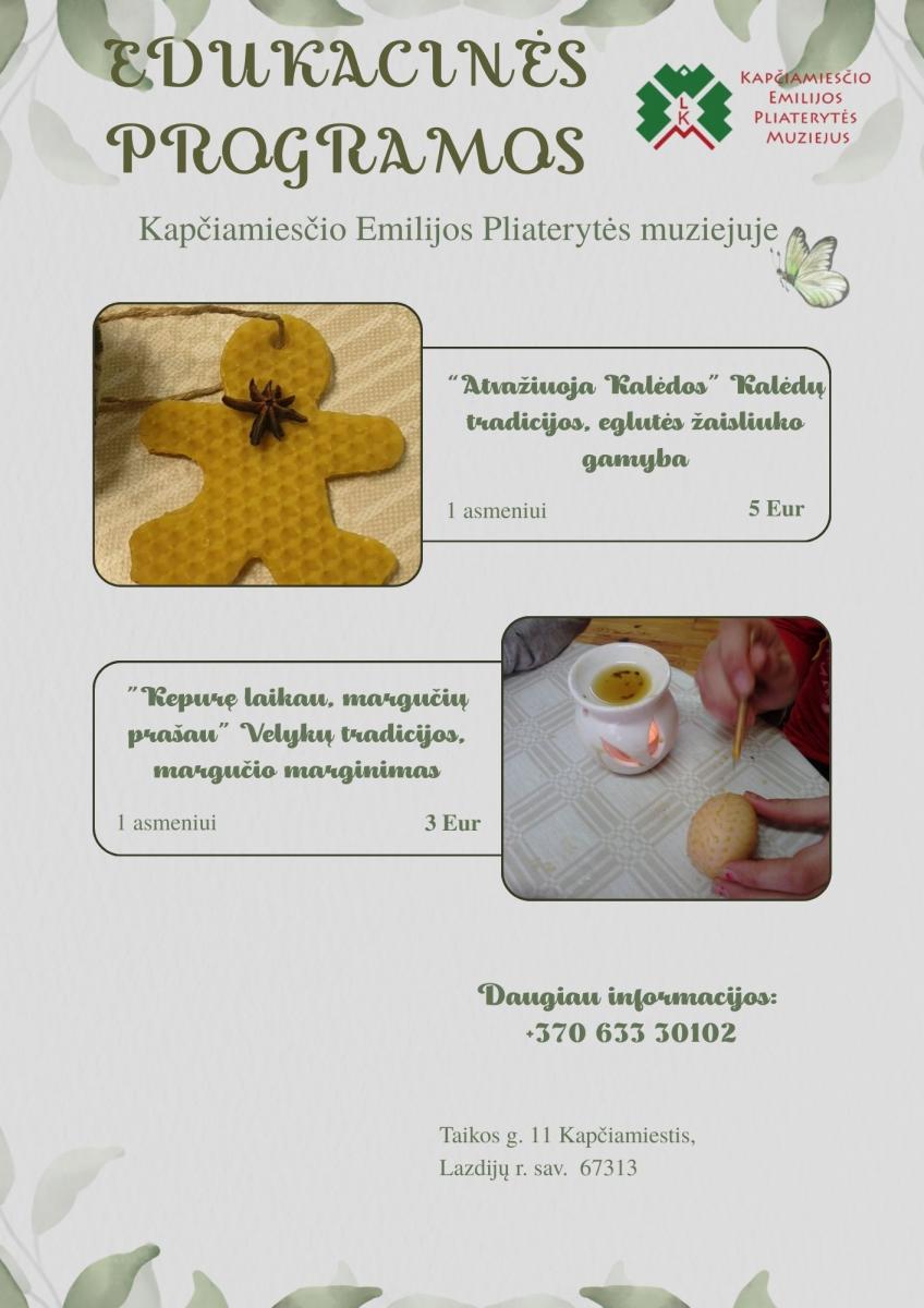 ZAPRASZAMY DO ZAPISU NA KURS EDUKACYJNY W MUZEUM EMILIJI PLATERYTĖ W KAPČIAMIESTIS!