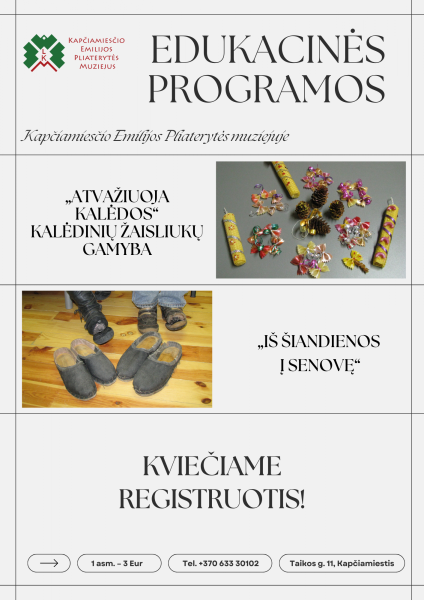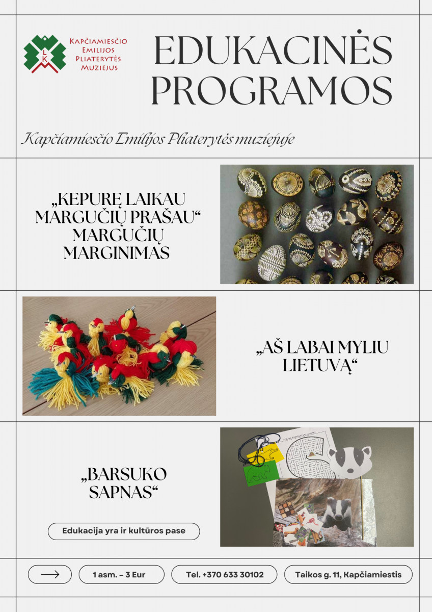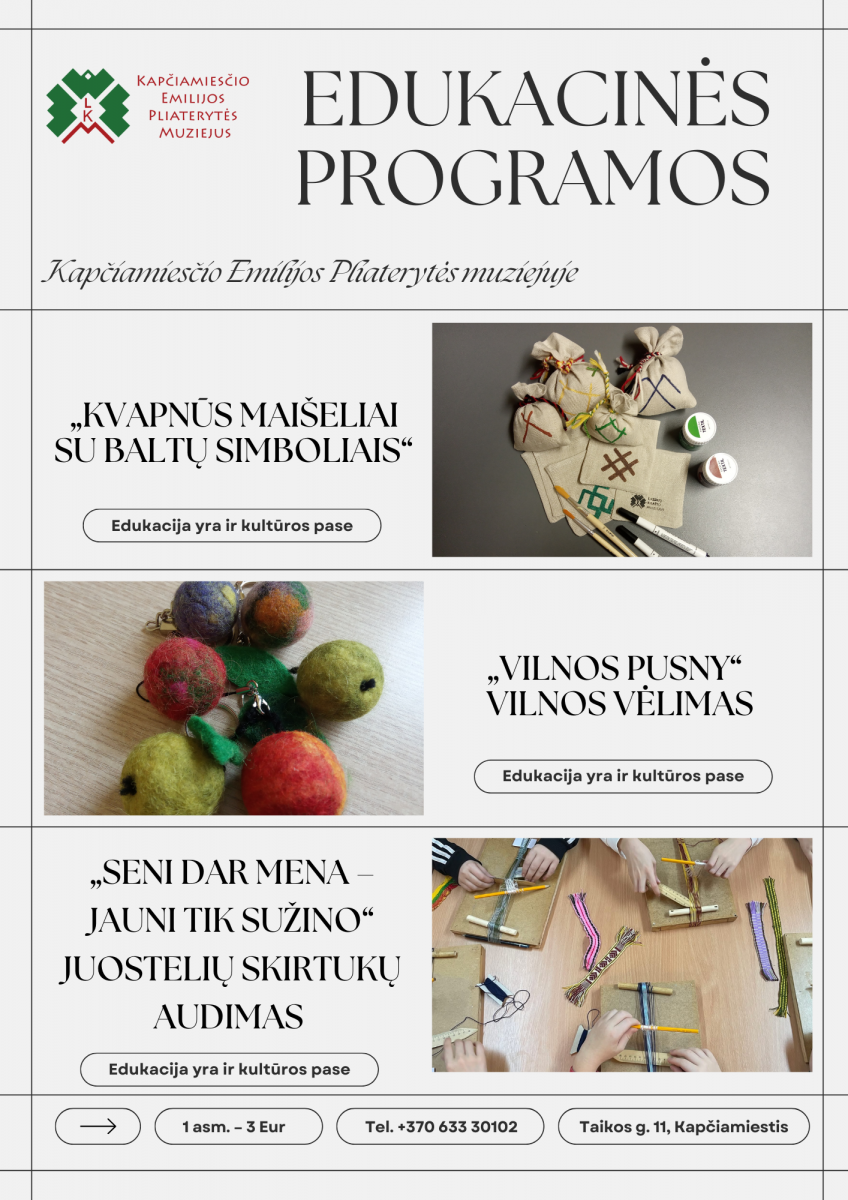 ZAPRASZAMY DO ZAPISÓW NA KURS EDUKACYJNY W MUZEUM EMILIJI PLATERYTĖ W KAPČIAMIESTIS!
