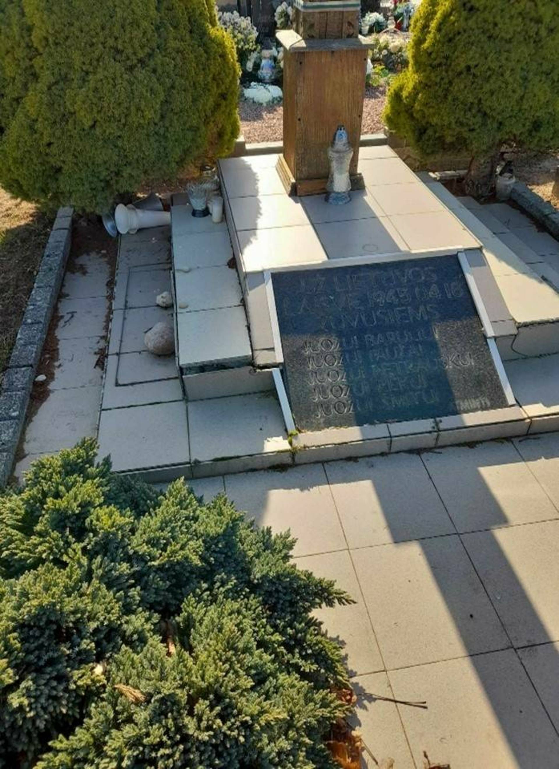 Partyzanci należeli do okręgu partyzanckiego Taurus. w 1945 18 kwietnia Mariampol aps. Piekarniki vs. (obecnie gmina rejonowa Łazdija) wieś Warta. w pobliżu, w lesie Bukta, 94. oddział oddziałów granicznych NKWD przeprowadził operację wojskowo-czekistowską. Według dokumentów archiwalnych w walkach zginęło 14 partyzantów drużyny Perkūnas. Pozostali wycofali się w stronę Bagien Bukta. Armia ścigała ich dalej i zabiła 19 kolejnych partyzantów. Według świadków zginęło 5-6 partyzantów, znani są: Juozas Barulis, g. w 1925 r Wieś Navavalakis ; Juozas Pauža, g. w 1925 r wieś Navavalakis; Juozas Petrauskas (brak danych); Juozas Rėkus, g. w 1912 Wieś Skersbali Podłoga pieca ; Juozas Šmitas, ur. w 1927 r wieś Turiszki
