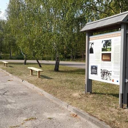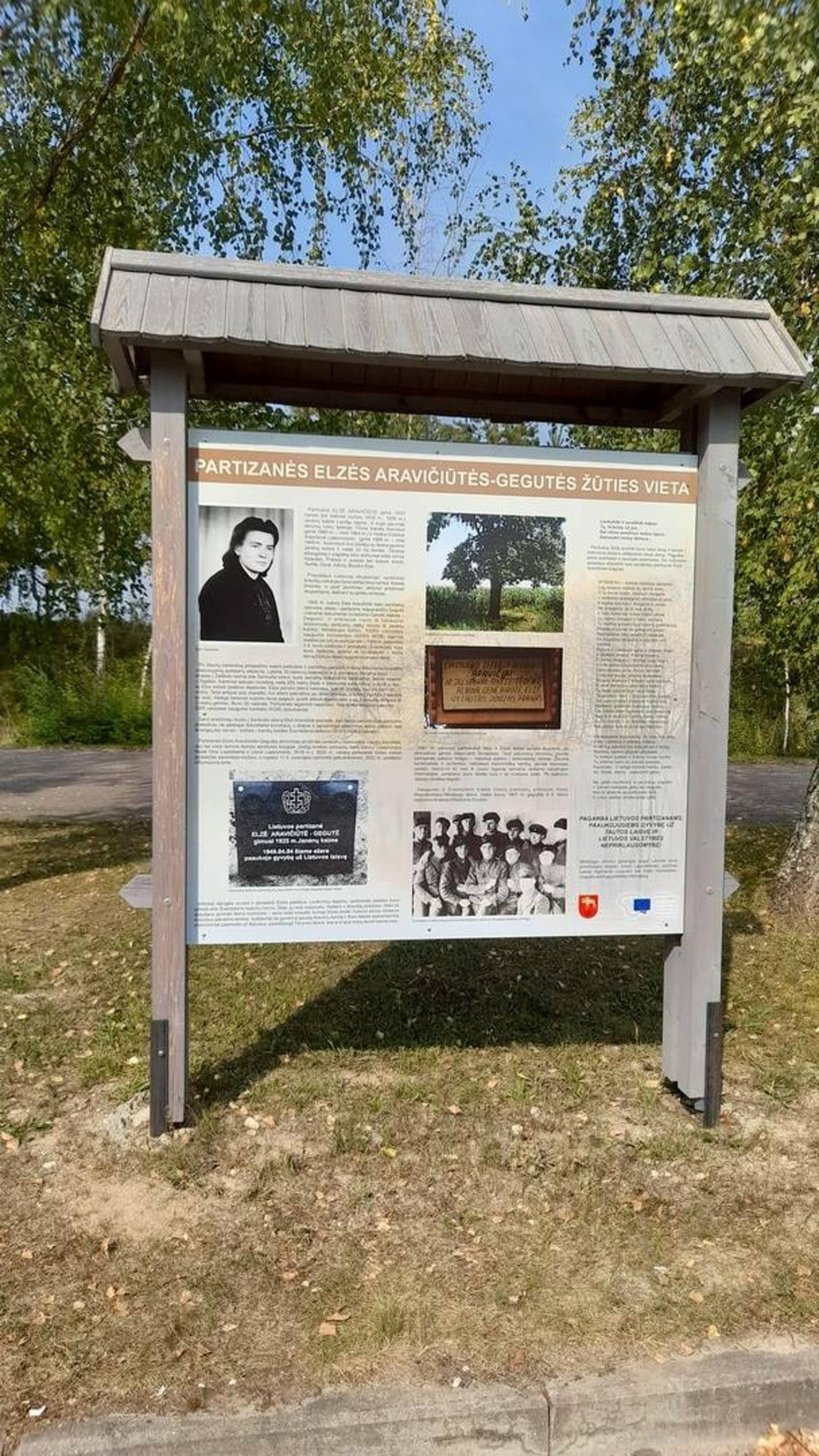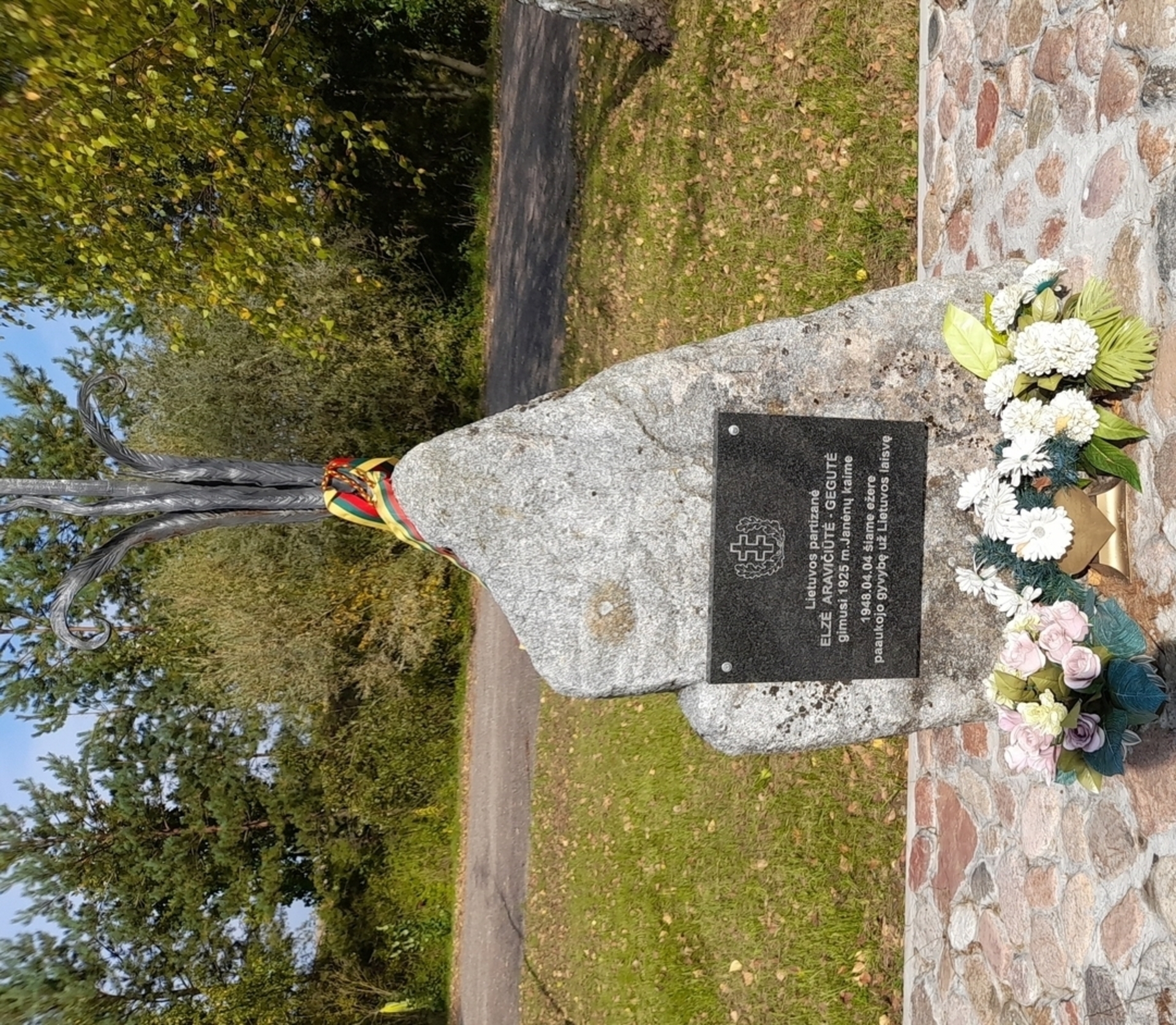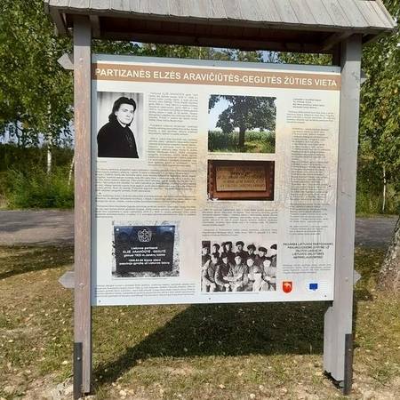 Miejsce pomnika litewskiej partyzantki Elze Aravičiūtė-Gegute zostało wybrane przez grupę roboczą gminy rejonu Lazdijai do uwiecznienia walk o wolność, autorów kompozycji pomnikowej Nijolė Ona Lepeškienė i siostrzeńca .