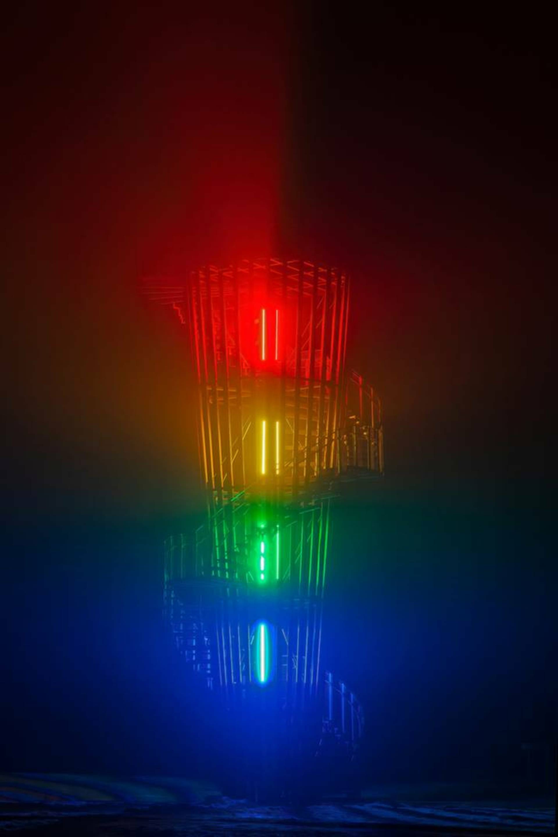 Autorem zdjęcia oświetlonej wieży jest Aldas Liaukus.