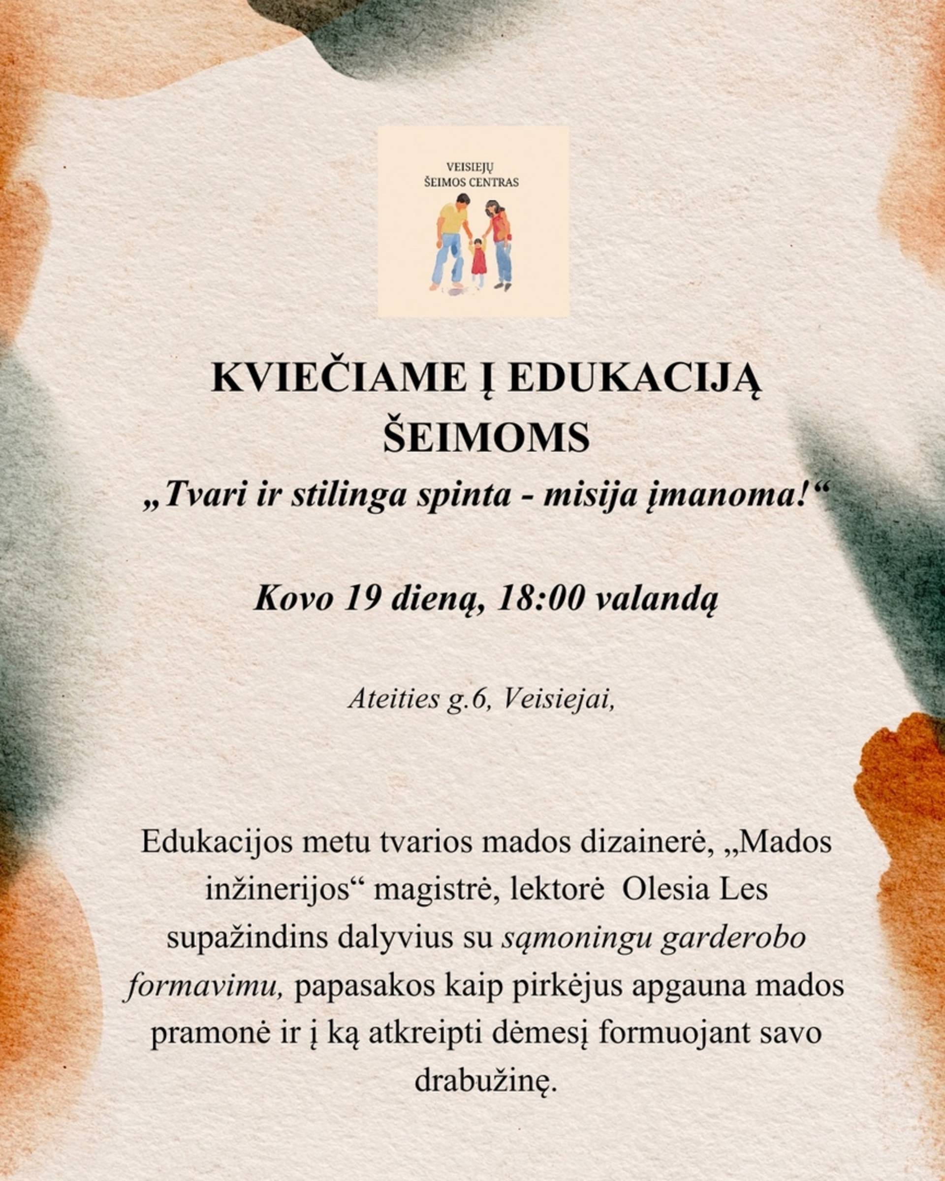 W trakcie zajęć edukacyjnych, projektantka mody zrównoważonej, magister inżynierii mody i wykładowczyni Olesia Les zapozna uczestników z ideą świadomego tworzenia garderoby, opowie, jak przemysł modowy oszukuje kupujących i na co zwracać uwagę przy tworzeniu własnej garderoby.
