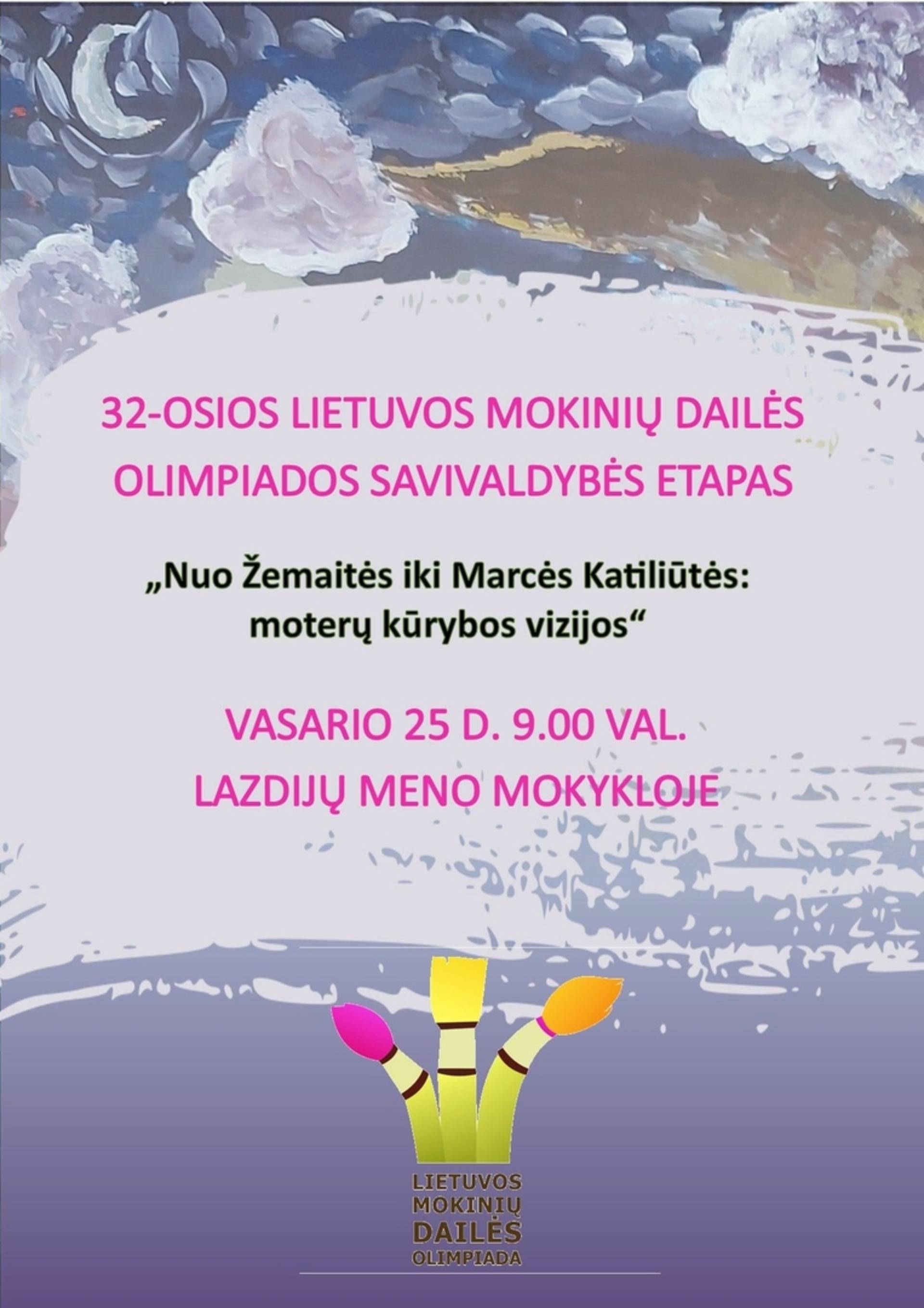 32. LITEWSKA OLIMPIADA ARTYSTYCZNA STUDENTÓW ETAP MIEJSKI „Od Žemaitė do Marcė Katiliūtė: wizje twórczości kobiet” 25 LUTEGO 9:00 W SZKOLE ARTYSTYCZNEJ W ŁAZDIJAI