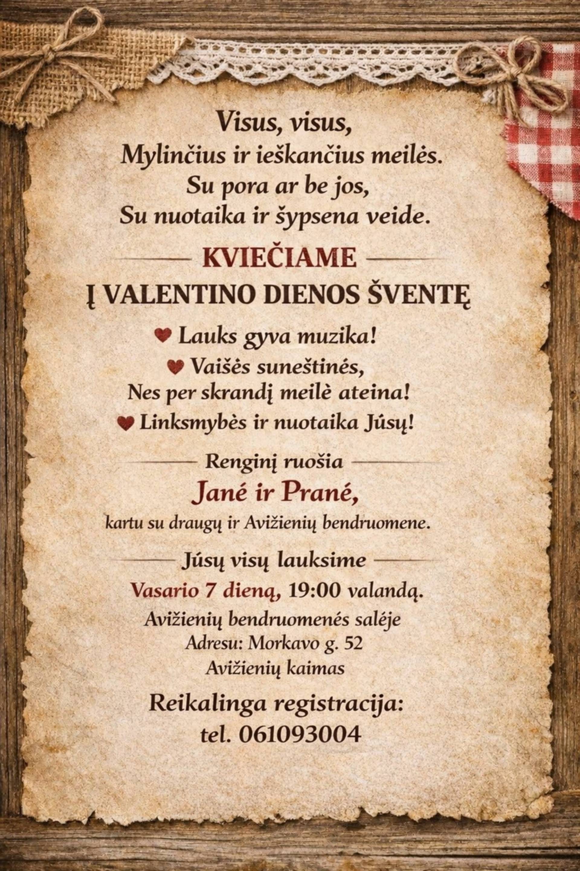 Zapraszamy na spotkanie 7 lutego o 19:00 w sali wiejskiej Avižieniai.